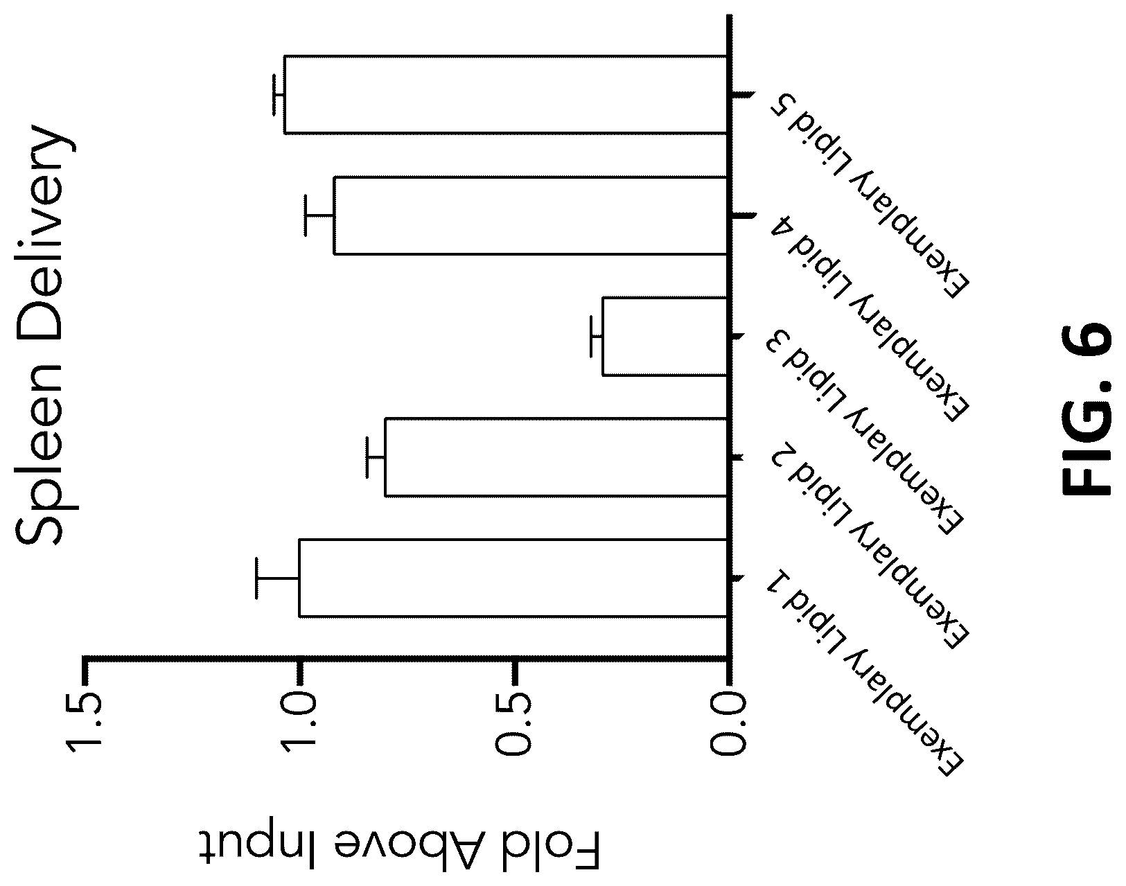 50. The LNP of embodiment 49, further comprising one or more contaminants and/or degradants. 51. The LNP of embodiment 49, excluding one or more contaminants and/or degradants. 52. The LNP preparation of embodiment 48 or 49, further comprising a therapeutic and/or prophylactic agent. 53. The LNP preparation of embodiment 52, wherein the therapeutic and/or prophylactic agent is or comprises one or more nucleic acids. 54. The LNP preparation of embodiment 53, wherein the one or more nucleic acids is or comprises RNA. 55. The LNP preparation of embodiment 54, wherein the RNA is or comprises mRNA, antisense RNA, siRNA, shRNA, miRNA, gRNA, or a combination thereof. 56. The LNP preparation of embodiment 53, wherein the one or more nucleic acids is or comprises DNA. 57. The LNP preparation of any one of embodiments 53-56, wherein the one or more nucleic acids comprises both RNA and DNA. 58. The LNP preparation of any one of embodiments 52-57, wherein the LNP preparation is formulated to deliver the therapeutic and/or prophylactic agent to target cells. 59. The LNP preparation of embodiment 58, wherein the target cells are or comprise spleen cells (e.g., splenic B cells, splenic T cells, splenic monocytes), liver cells (e.g., hepatocytes), bone marrow cells (e.g., bone marrow monocytes), immune cells, muscle cells (e.g., myocytes), heart cells (e.g., cardiomyocytes), kidney cells, or cells in the central nervous system. 60. The LNP preparation of embodiment 58, wherein the target cells are or comprise hematopoietic stem cells. 61. The LNP preparation of any one of embodiments 48-60, wherein the ionizable lipid comprises a compound according to any one of embodiments 1-47, or a combination thereof. 62. The LNP preparation of any one of embodiments 48-61, wherein the LNP preparation comprises less than about 70 mol percent or less of the ionizable lipid. 63. The LNP preparation of any one of embodiments 48-62, wherein the LNP preparation comprises from about 30 mol percent to about 70 mol percent ionizable lipid. 64. The LNP preparation of any one of embodiments 48-63, wherein the LNP preparation comprises about 50 mol percent ionizable lipid. 65. The LNP preparation of any one of embodiments 48-63, wherein the LNP preparation comprises about 35 mol percent ionizable lipid. 66. The LNP preparation of any one of embodiments 48-63, wherein the LNP preparation comprises about 47.5 mol percent ionizable lipid. 67. The LNP preparation of any one of embodiments 49-66, wherein the phospholipid comprises 1,2-dioleoyl-sn-glycero-3-phosphoethanolamine-N-(succinyl) (succinyl PE), 1,2-distearoyl-sn-glycero-3-phosphocholine (DSPC), cholesterol, 1,2-distearoyl-sn-glycero-3-phosphoethanolamine (DSPE), 1,2-dipalmitoyl-sn-glycero-3-phosphoethanolamine-N-(succinyl) (succinyl-DPPE), 1,2-dioleoyl-sn-glycero-3-phosphoethanolamine (DOPE), 1,2-dimyristoyl-sn-glycero-3-phosphocholine (DMPC), 1,2-dipalmitoyl-sn-glycero-3-phosphocholine (DPPC), or a combination thereof. 68. The LNP preparation of any one of embodiments 49-67, wherein the phospholipid is or comprises DSPC. 69. The LNP preparation of any one of embodiments 49-68, wherein the LNP preparation comprises from about 10 mol percent to about 65 mol percent phospholipid. 70. The LNP preparation of any one of embodiments 49-69, wherein the LNP preparation comprises about 9 mol percent phospholipid. 71. The LNP preparation of any one of embodiments 49-69, wherein the LNP preparation comprises about 10 mol percent phospholipid. 72. The LNP preparation of any one of embodiments 49-69, wherein the LNP preparation comprises about 16 mol percent phospholipid. 73. The LNP preparation of any one of embodiments 49-72, wherein the conjugate-linker lipid comprises a polyethylene glycol lipid. 74. The LNP preparation of any one of embodiments 49-73, wherein the conjugate-linker lipid comprises DiMystyrlGlycerol (DMG), 1,2-Dipalmitoyl-rac-glycerol, 1,2-Dipalmitoyl-rac-glycerol, methoxypolyethylene Glycol (DPG-PEG), 1,2-Distearoyl-rac-glycero-3-methylpolyoxyethylene (DSG-PEG), or any combination thereof. 75. The LNP preparation of any one of embodiments 49-74, wherein the conjugate-linker lipid has an average molecular mass from about 500 Da to about 5000 Da. 76. The LNP preparation of any one of embodiments 49-75, wherein the conjugate-linker lipid has an average molecular mass of about 2000 Da. 77. The LNP preparation of any one of embodiments 49-76, wherein the LNP preparation comprises from about 0 mol percent to about 5 mol percent conjugate-linker lipid. 78. The LNP preparation of any one of embodiments 49-77, wherein the LNP preparation comprises about 1.5 mol percent conjugate-linker lipid. 79. The LNP preparation of any one of embodiments 49-77, wherein the LNP preparation comprises about 2.5 mol percent conjugate-linker lipid. 80. The LNP preparation of any one of embodiments 49-77, wherein the LNP preparation comprises about 3 mol percent conjugate-linker lipid. 81. The LNP preparation of any one of embodiments 49-80, wherein the LNP preparation comprises from about 20 mol percent to about 50 mol percent sterol. 82. The LNP preparation of any one of embodiments 49-81, wherein the LNP preparation comprises about 46.5 mol percent sterol. 83. The LNP preparation of any one of embodiments 49-81, wherein the LNP preparation comprises about 38 mol percent sterol. 84. The LNP preparation of any one of embodiments 49-81, wherein the LNP preparation comprises about 38.5 mol percent sterol. 85. The LNP preparation of any one of embodiments 49-81, wherein the LNP preparation comprises about 40 mol percent sterol. 86. The LNP preparation of any one of embodiments 49-85, wherein the sterol is a cholesterol, or a variant or derivative thereof. 87. The LNP preparation of any one of embodiments 49-86, wherein the cholesterol is an oxidized cholesterol. 88. The LNP preparation of any one of embodiments 49-86, wherein the cholesterol is an esterified cholesterol. 89. The LNP preparation 