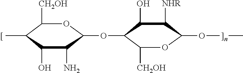 Cationic polymers. Chitosans are biopolymers which belong to the group of hydrocolloids. Chemically, they are partly de-acetylated chitins differing in their molecular weights which contain the following—idealized—monomer unit: