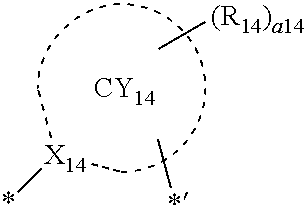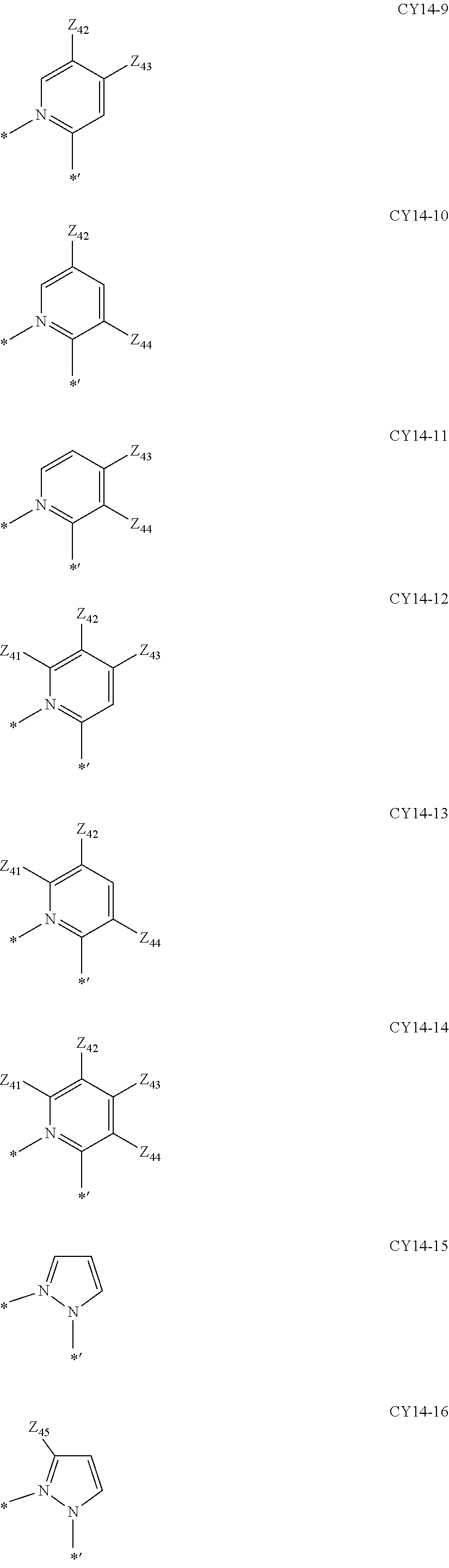 In one or more embodiments, a moiety represented by in Formula 1 may be a group represented by one selected from Formulae CY14-1 to CY14-22: In Formulae CY14-1 to CY14-22,