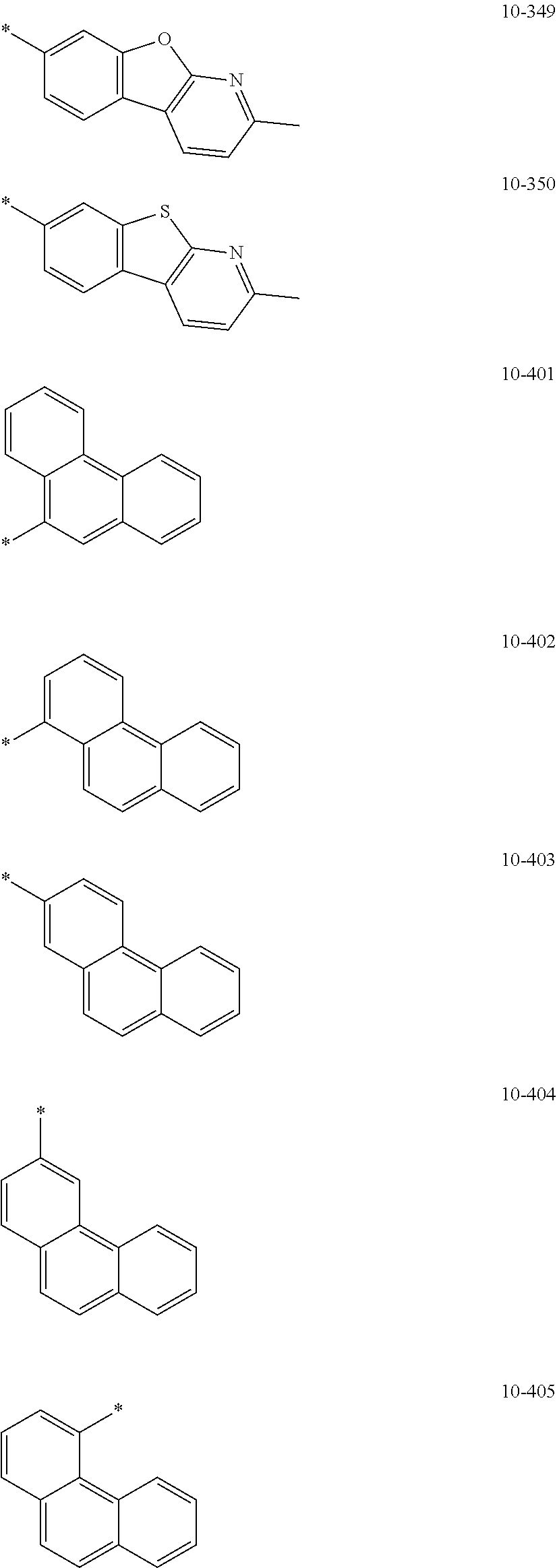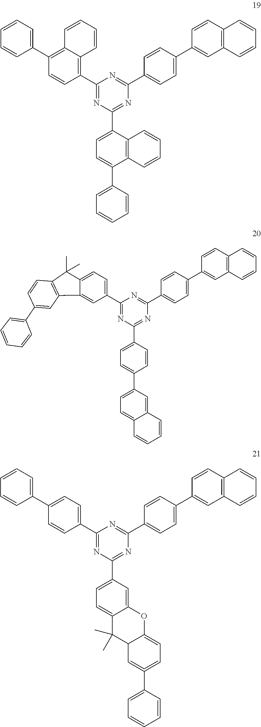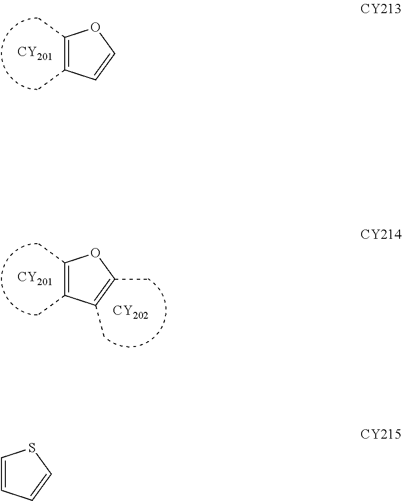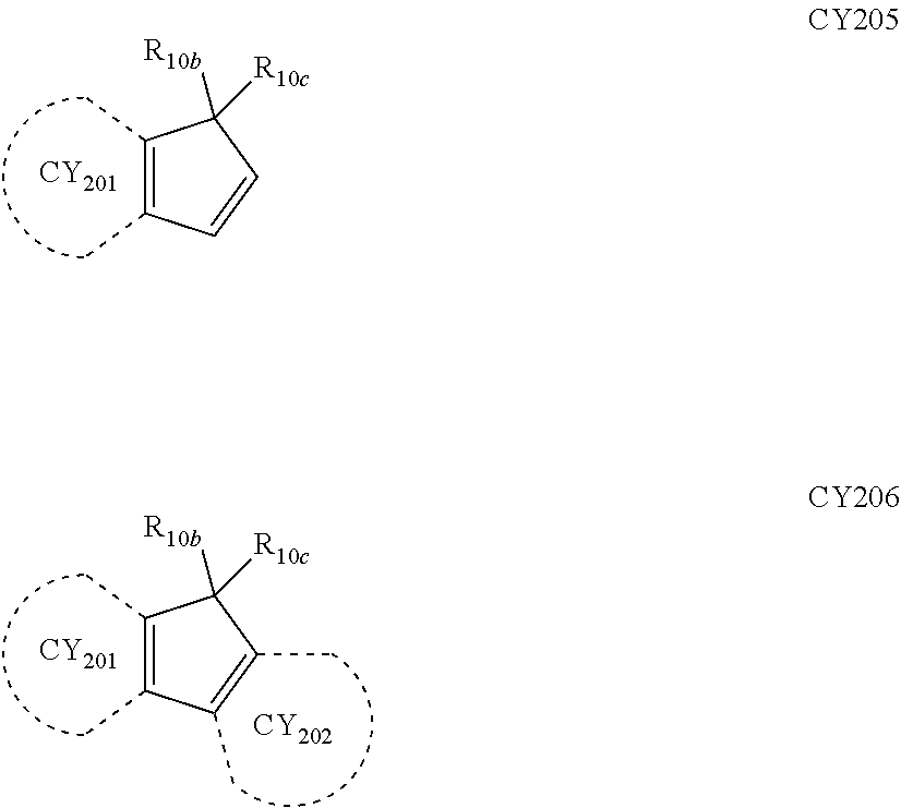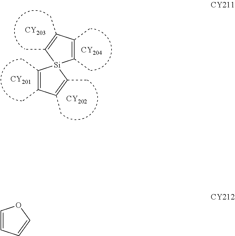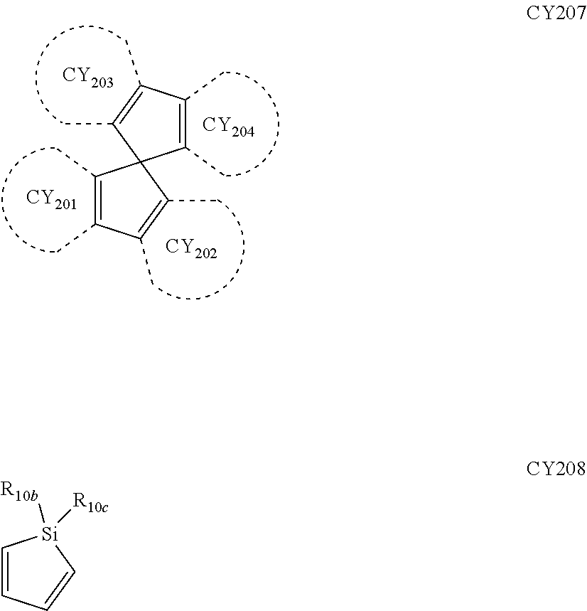 The terms “the cyclic group, the C3-C60carbocyclic group, the C1-C60heterocyclic group, the π electron-rich C3-C60cyclic group, or the π electron-deficient nitrogen-containing C1-C60cyclic group” as utilized herein refer to a group condensed to any cyclic group, a monovalent group, or a polyvalent group (for example, a divalent group, a trivalent group, a tetravalent group, etc.) according to the structure of a formula for which the corresponding term is utilized. For example, the “benzene group” may be a benzo group, a phenyl group, a phenylene group, and/or the like, which may be easily understood by one of ordinary skill in the art according to the structure of a formula including the “benzene group.” Non-limiting examples of the monovalent C3-C60carbocyclic group and the monovalent C1-C60heterocyclic group may include a C3-C10cycloalkyl group, a C1-C10heterocycloalkyl group, a C3-C10cycloalkenyl group, a C1-C10heterocycloalkenyl group, a C6-C60aryl group, a C1-C60heteroaryl group, a monovalent non-aromatic condensed polycyclic group, and a monovalent non-aromatic condensed heteropolycyclic group. Non-limiting examples of the divalent C3-C60carbocyclic group and the divalent C1-C60heterocyclic group may include a C3-C10cycloalkylene group, a C1-C10heterocycloalkylene group, a C3-C10cycloalkenylene group, a C1-C10heterocycloalkenylene group, a C6-C60arylene group, a C1-C60heteroarylene group, a divalent non-aromatic condensed polycyclic group, and a divalent non-aromatic condensed heteropolycyclic group. The term “C1-C60alkyl group” as utilized herein refers to a linear or branched aliphatic hydrocarbon monovalent group that has one to sixty carbon atoms, and non-limiting examples thereof are a methyl group, an ethyl group, an n-propyl group, an isopropyl group, an n-butyl group, a sec-butyl group, an isobutyl group, a tert-butyl group, an n-pentyl group, a tert-pentyl group, a neopentyl group, an isopentyl group, a sec-pentyl group, a 3-pentyl group, a sec-isopentyl group, an n-hexyl group, an isohexyl group, a sec-hexyl group, a tert-hexyl group, an n-heptyl group, an isoheptyl group, a sec-heptyl group, a tert-heptyl group, an n-octyl group, an isooctyl group, a sec-octyl group, a tert-octyl group, an n-nonyl group, an isononyl group, a sec-nonyl group, a tert-nonyl group, an n-decyl group, an isodecyl group, a sec-decyl group, and a tert-decyl group. The term “C1-C60alkylene group” as utilized herein refers to a divalent group having the same structure as the C1-C60alkyl group. The term “C2-C60alkenyl group” as utilized herein refers to a monovalent hydrocarbon group having at least one carbon-carbon double bond in the middle or at the terminus of the C2-C60alkyl group, and non-limiting examples thereof are an ethenyl group, a propenyl group, and a butenyl group. The term “C2-C60alkenylene group” as utilized herein refers to a divalent group having the same structure as the C2-C60alkenyl group. The term “C2-C60alkynyl group” as utilized herein refers to a monovalent hydrocarbon group having at least one carbon-carbon triple bond in the middle or at the terminus of the C2-C60alkyl group, and non-limiting examples thereof include an ethynyl group, a propynyl group, and/or the like. The term “C2-C60alkynylene group” as utilized herein refers to a divalent group having the same structure as the C2-C60alkynyl group. The term “C1-C60alkoxy group” as utilized herein refers to a monovalent group represented by —OA101(wherein A101is the C1-C60alkyl group), and non-limiting examples thereof include a methoxy group, an ethoxy group, and an isopropyloxy group. The term “C3-C10cycloalkyl group” as utilized herein refers to a monovalent saturated hydrocarbon cyclic group having 3 to 10 carbon atoms, and non-limiting examples thereof are a cyclopropyl group, a cyclobutyl group, a cyclopentyl group, a cyclohexyl group, a cycloheptyl group, a cyclooctyl group, an adamantanyl group, a norbornanyl group (or bicyclo[2.2.1]heptyl group), a bicyclo[1.1.1]pentyl group, a bicyclo[2.1.1]hexyl group, and a bicyclo[2.2.2]octyl group. The term “C3-C10cycloalkylene group” as utilized herein refers to a divalent group having the same structure as the C3-C10cycloalkyl group. The term “C1-C10heterocycloalkyl group” as utilized herein refers to a monovalent cyclic group of 1 to 10 carbon atoms, further including, in addition to carbon atoms, at least one heteroatom, as ring-forming atoms, and non-limiting examples thereof are a 1,2,3,4-oxatriazolidinyl group, a tetrahydrofuranyl group, and a tetrahydrothiophenyl group. The term “C1-C10heterocycloalkylene group” as utilized herein refers to a divalent group having the same structure as the C1-C10heterocycloalkyl group. The term C3-C10cycloalkenyl group utilized herein refers to a monovalent cyclic group that has three to ten carbon atoms and at least one carbon-carbon double bond in the ring thereof and no aromaticity, and non-limiting examples thereof are a cyclopentenyl group, a cyclohexenyl group, and a cycloheptenyl group. The term “C3-C10cycloalkenylene group” as utilized herein refers to a divalent group having the same structure as the C3-C10cycloalkenyl group. The term “C1-C10heterocycloalkenyl group” as utilized herein refers to a monovalent cyclic group of 1 to 10 carbon atoms, further including, in addition to carbon atoms, at least one heteroatom, as ring-forming atoms, and having at least one double bond in the cyclic structure thereof. Non-limiting examples of the C1-C10heterocycloalkenyl group include a 4,5-dihydro-1,2,3,4-oxatriazolyl group, a 2,3-dihydrofuranyl group, and a 2,3-dihydrothiophenyl group. The term “C1-C10heterocycloalkenylene group” as utilized herein refers to a divalent group having the same structure as the C1-C10heterocycloalkenyl group. The term “C6-C60aryl group” as utilized herein refers to a monovalent group having a carbocyclic aromatic system of 6 to