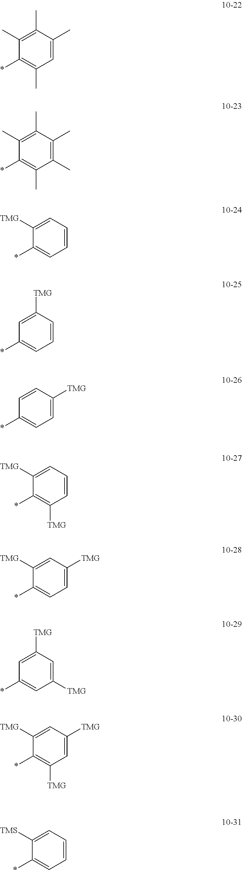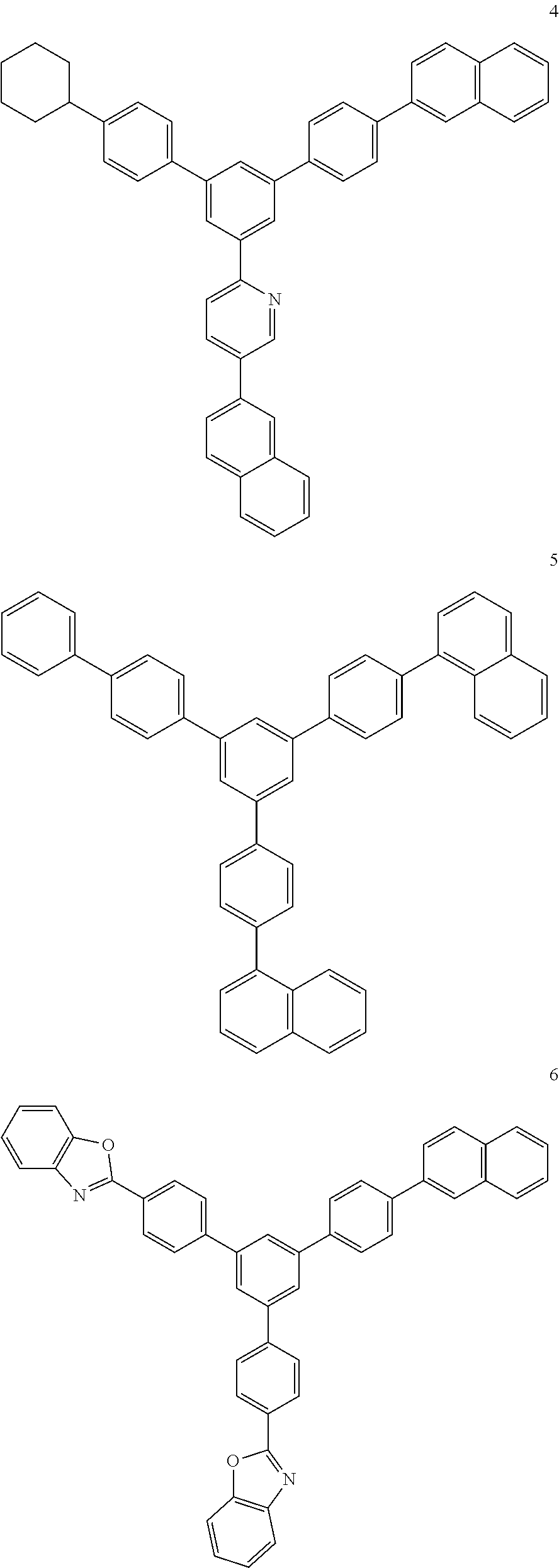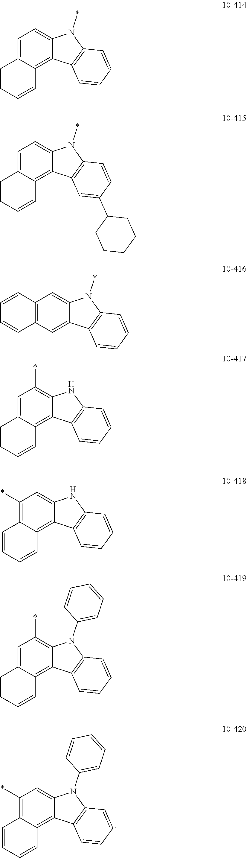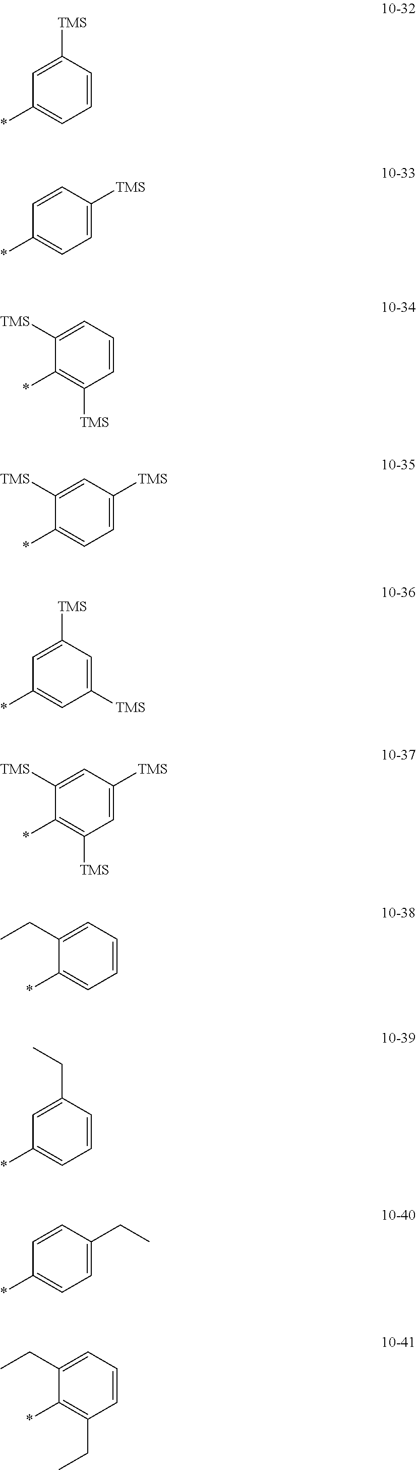 The terms “the cyclic group, the C3-C60carbocyclic group, the C1-C60heterocyclic group, the π electron-rich C3-C60cyclic group, or the π electron-deficient nitrogen-containing C1-C60cyclic group” as utilized herein refer to a group condensed to any cyclic group, a monovalent group, or a polyvalent group (for example, a divalent group, a trivalent group, a tetravalent group, etc.) according to the structure of a formula for which the corresponding term is utilized. For example, the “benzene group” may be a benzo group, a phenyl group, a phenylene group, and/or the like, which may be easily understood by one of ordinary skill in the art according to the structure of a formula including the “benzene group.” Non-limiting examples of the monovalent C3-C60carbocyclic group and the monovalent C1-C60heterocyclic group may include a C3-C10cycloalkyl group, a C1-C10heterocycloalkyl group, a C3-C10cycloalkenyl group, a C1-C10heterocycloalkenyl group, a C6-C60aryl group, a C1-C60heteroaryl group, a monovalent non-aromatic condensed polycyclic group, and a monovalent non-aromatic condensed heteropolycyclic group. Non-limiting examples of the divalent C3-C60carbocyclic group and the divalent C1-C60heterocyclic group may include a C3-C10cycloalkylene group, a C1-C10heterocycloalkylene group, a C3-C10cycloalkenylene group, a C1-C10heterocycloalkenylene group, a C6-C60arylene group, a C1-C60heteroarylene group, a divalent non-aromatic condensed polycyclic group, and a divalent non-aromatic condensed heteropolycyclic group. The term “C1-C60alkyl group” as utilized herein refers to a linear or branched aliphatic hydrocarbon monovalent group that has one to sixty carbon atoms, and non-limiting examples thereof are a methyl group, an ethyl group, an n-propyl group, an isopropyl group, an n-butyl group, a sec-butyl group, an isobutyl group, a tert-butyl group, an n-pentyl group, a tert-pentyl group, a neopentyl group, an isopentyl group, a sec-pentyl group, a 3-pentyl group, a sec-isopentyl group, an n-hexyl group, an isohexyl group, a sec-hexyl group, a tert-hexyl group, an n-heptyl group, an isoheptyl group, a sec-heptyl group, a tert-heptyl group, an n-octyl group, an isooctyl group, a sec-octyl group, a tert-octyl group, an n-nonyl group, an isononyl group, a sec-nonyl group, a tert-nonyl group, an n-decyl group, an isodecyl group, a sec-decyl group, and a tert-decyl group. The term “C1-C60alkylene group” as utilized herein refers to a divalent group having the same structure as the C1-C60alkyl group. The term “C2-C60alkenyl group” as utilized herein refers to a monovalent hydrocarbon group having at least one carbon-carbon double bond in the middle or at the terminus of the C2-C60alkyl group, and non-limiting examples thereof are an ethenyl group, a propenyl group, and a butenyl group. The term “C2-C60alkenylene group” as utilized herein refers to a divalent group having the same structure as the C2-C60alkenyl group. The term “C2-C60alkynyl group” as utilized herein refers to a monovalent hydrocarbon group having at least one carbon-carbon triple bond in the middle or at the terminus of the C2-C60alkyl group, and non-limiting examples thereof include an ethynyl group, a propynyl group, and/or the like. The term “C2-C60alkynylene group” as utilized herein refers to a divalent group having the same structure as the C2-C60alkynyl group. The term “C1-C60alkoxy group” as utilized herein refers to a monovalent group represented by —OA101(wherein A101is the C1-C60alkyl group), and non-limiting examples thereof include a methoxy group, an ethoxy group, and an isopropyloxy group. The term “C3-C10cycloalkyl group” as utilized herein refers to a monovalent saturated hydrocarbon cyclic group having 3 to 10 carbon atoms, and non-limiting examples thereof are a cyclopropyl group, a cyclobutyl group, a cyclopentyl group, a cyclohexyl group, a cycloheptyl group, a cyclooctyl group, an adamantanyl group, a norbornanyl group (or bicyclo[2.2.1]heptyl group), a bicyclo[1.1.1]pentyl group, a bicyclo[2.1.1]hexyl group, and a bicyclo[2.2.2]octyl group. The term “C3-C10cycloalkylene group” as utilized herein refers to a divalent group having the same structure as the C3-C10cycloalkyl group. The term “C1-C10heterocycloalkyl group” as utilized herein refers to a monovalent cyclic group of 1 to 10 carbon atoms, further including, in addition to carbon atoms, at least one heteroatom, as ring-forming atoms, and non-limiting examples thereof are a 1,2,3,4-oxatriazolidinyl group, a tetrahydrofuranyl group, and a tetrahydrothiophenyl group. The term “C1-C10heterocycloalkylene group” as utilized herein refers to a divalent group having the same structure as the C1-C10heterocycloalkyl group. The term C3-C10cycloalkenyl group utilized herein refers to a monovalent cyclic group that has three to ten carbon atoms and at least one carbon-carbon double bond in the ring thereof and no aromaticity, and non-limiting examples thereof are a cyclopentenyl group, a cyclohexenyl group, and a cycloheptenyl group. The term “C3-C10cycloalkenylene group” as utilized herein refers to a divalent group having the same structure as the C3-C10cycloalkenyl group. The term “C1-C10heterocycloalkenyl group” as utilized herein refers to a monovalent cyclic group of 1 to 10 carbon atoms, further including, in addition to carbon atoms, at least one heteroatom, as ring-forming atoms, and having at least one double bond in the cyclic structure thereof. Non-limiting examples of the C1-C10heterocycloalkenyl group include a 4,5-dihydro-1,2,3,4-oxatriazolyl group, a 2,3-dihydrofuranyl group, and a 2,3-dihydrothiophenyl group. The term “C1-C10heterocycloalkenylene group” as utilized herein refers to a divalent group having the same structure as the C1-C10heterocycloalkenyl group. The term “C6-C60aryl group” as utilized herein refers to a monovalent group having a carbocyclic aromatic system of 6 to