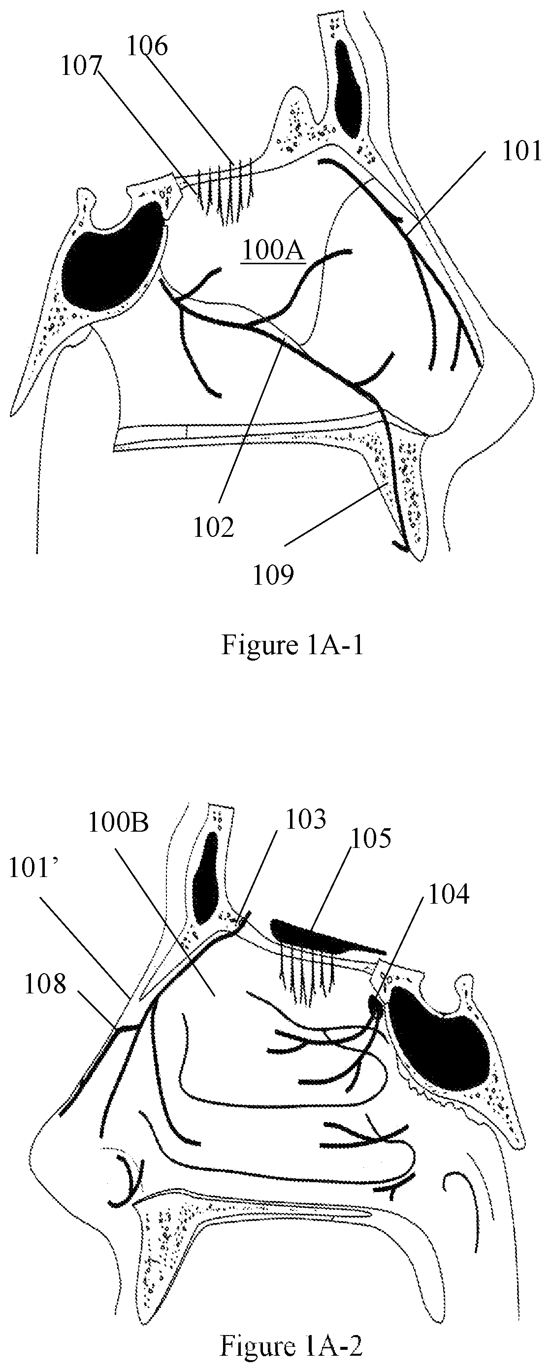 The present invention is related to medical methods and apparatus. More particularly, the present invention is related to methods and devices to treat diseases by modulating the functioning of sensory neurons within the head and neck anatomy. In addition to the special senses of olfaction, gustation, visual, and vestibular, there is another, sense that is responsive to environmental conditions. Upon activation, this system, can elicit thermal, nociception, or tactile sensations. This sense often referred to as sensory, general sensory, or common chemical sense is an integral part of the peripheral nervous system, providing somatosensory and vicerosensory information from the organs to the brain. The somatosensory pathway transmits information from the environment to the brain while the visceral sensory component is responsible for monitoring the internal environment within organs to effect and maintain homeostasis. Sensory neurons can respond to different stimuli and can be divided into thermoreceptors, mechanoreceptors, nociceptors, photoreceptors, and chemoreceptors. Visceral sensory nerves transmit pain, stretch, temperature, and chemical change in visceral organs which gets interpreted as sensations like nausea, hunger, gas, cramping, etc. General visceral sensory neurons are considered part of the autonomic nervous system, but unlike the efferent arm, these neurons do not classify as sympathetic or parasympathetic. For example, the surface of the epithelia of nasal and oral cavities are responsive to tactile and thermal stimuli. Or the peripheral fibers of the trigeminal system, within the ocular, nasal or oral cavities terminating as “free nerve endings”, can be excited by variety of noxious chemicals. This responsiveness to environmental stimuli, is believed to be produced by terminals of thinly or unmyelinated neurons ending in the epithelium, capable of interacting with the environment. Sensory neurons contain major neuropeptide classes, such as substance P and calcitonin gene-related peptide (CGRP). These neuropeptides are present throughout the peripheral and central nervous system. CGRP is a potent microvascular vasodilator in most vascular beds, especially associated with the heart and trigeminal circulations. Substance P is involved mediating neurogenic vasodilation and increased microvascular permeability. Upon stimulation by environmental or endogenous stimuli, sensory neurons participate in body's reaction to such stimuli by effecting neurogenic influence on the local vasculature and regulating local inflammation, resulting in acute effects such as oedema formation and increased blood flow. The term ‘neurogenic inflammation’ is commonly used to describe the concept that sensory nerves participate in inflammation. Discovery of transient receptor potential vanilloid 1 (TRPV1) on majority of sensory neurons has provided additional insight in the mechanism by which sensory neurons participate in inflammation. TRPV1 and TRP Ankyrin 1 (TRPA1) channels are activated by distinct chemical agents, with TRPV1 mediating noxious heat and TRPA1 mediating cooler temperatures including noxious cold with effects closely linked to temperature-induced vascular changes. There is evidence that both TRPV1 and TRPA1 have important roles in acute and chronic inflammation. TRP channels (as they are called generally) are implicated in a plethora of physiological processes taking place in the upper airways, including chemosensation, thermosensation, nociception, regulation of the tone and permeability of the vasculature, release of neuropeptides and immune cell mediators, ciliary beating, mucus secretion, and epithelial barrier function. Sensory neurons have become an important pharmaceutical target in treating several chronic diseases. For example, substance P antagonist is approved for the treatment of nausea and vomiting induced by chemotherapy, CGRP antibodies and antagonists are in late-phase clinical trials for migraine, and TRPA1 antagonists are under clinical trials for diabetic neuropathy. Systemic targeting of sensory neurons comes with significant side effects as these neurons are present in many tissues and organs and the systemic pharmaceutical treatment can not specifically target one diseased tissue, sparing the rest. Therefore, therapies that can target the malfunctioning neurons on a local basis can present a great opportunity in treating multitude of disease states. This is of more importance considering the local interaction between sensory neurons and their free nerve endings and their cellular environment. Local, device-based therapies could offer the potential of treating both the neurons and their cellar neighbors improving the chances for success. The inventions presented in this application are intended to provide methods and devices to treat diseases by modulating the functioning of sensory neurons within the head and neck anatomy. For example, nasal hypersensitivity can be a direct cause of nasal sensory neuron overreactivity while, in another example, nasal sensory neurons can be stimulated to improve cerebral blood flow in patients suffering from stroke. Nasal Hyperreactivity Rhinitis and rhinosinusitis are two chronic upper airway diseases characterized by inflammation of the nasal mucosa that results in pathological features such as rhinorrhea, post-nasal drip, nasal obstruction, nasal itch, sneezing, loss of smell, and/or facial pain and pressure. These symptoms represent exaggerations of normal defensive functions mediated by neural activity or nasal hyperreactivity. Nasal hyperreactivity is defined as “the induction of one or more nasal symptoms like rhinorrhea, sneezing/itch, or obstruction upon encounter of environmental stimuli, such as cigarette smoke, temperature/humidity changes, strong odors/fragrances, and other irritants” (van Gerven et al., 2018). Nasal mucosa is innervated by three major neural networks: sensory, parasympathetic, and sympath