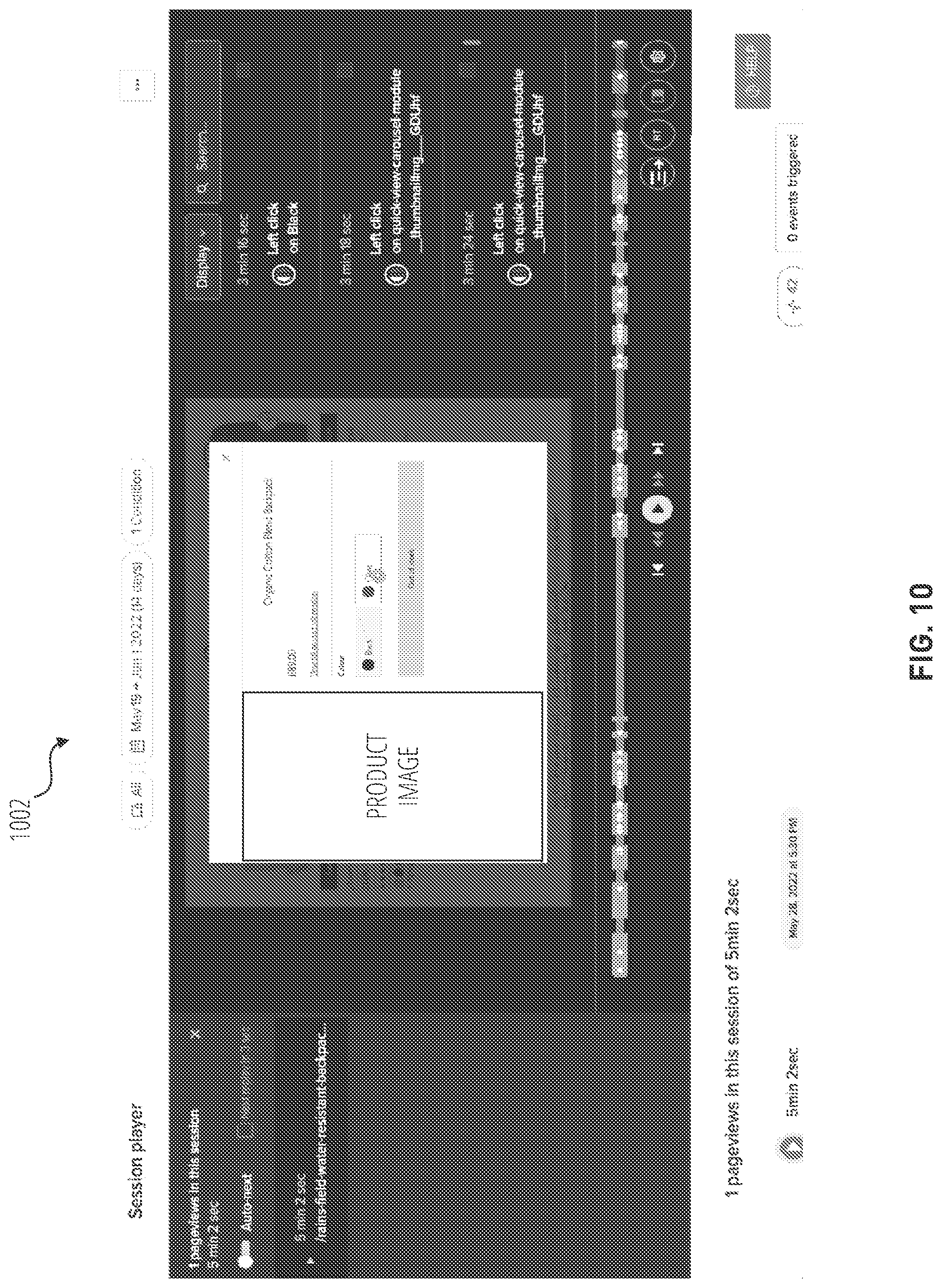 FIG. 10 illustrates an example screenshot of a session replay in accordance with one example embodiment.
