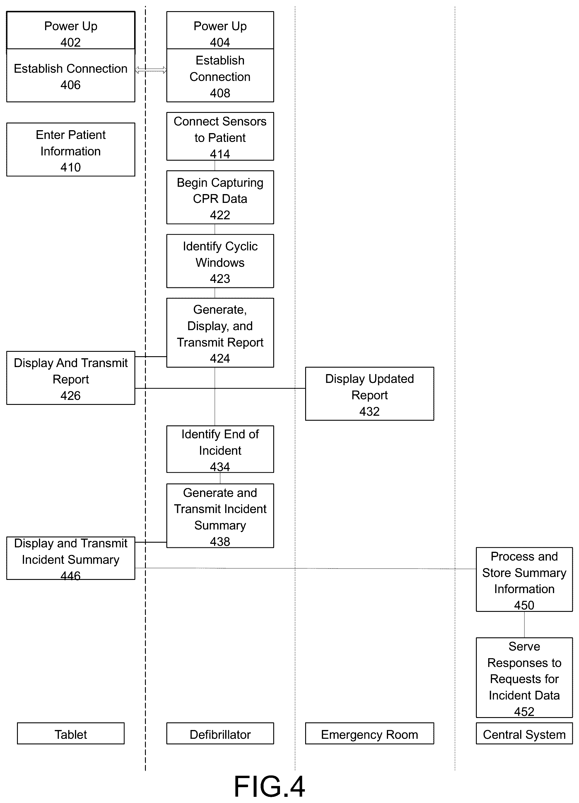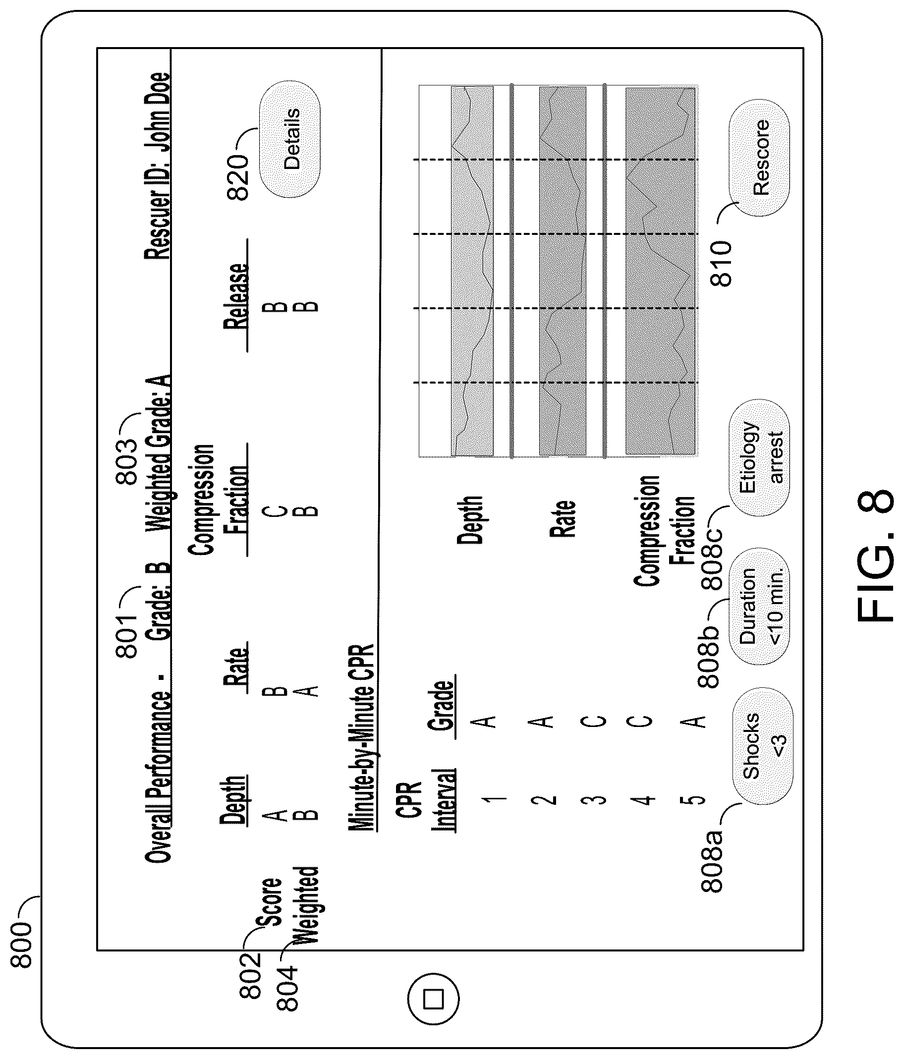 This application is a continuation of U.S. patent application Ser. No. 17/402,826, filed Aug. 16, 2021, which is a continuation of U.S. patent application Ser. No. 16/232,340, filed Dec. 26, 2018, which issued as U.S. Pat. No. 11,127,497 on Sep. 21, 2021, which is a continuation of U.S. patent application Ser. No. 14/296,861, filed Jun. 5, 2014, which issued as U.S. Pat. No. 10,204,389 on Feb. 12, 2019, and which claims priority under 35 U.S.C. § 119(e) to U.S. Provisional Patent Application No. 61/833,296, filed on Jun. 10, 2013, the entire contents of each of which are hereby incorporated by reference in their entireties. This document relates to computer-based systems and techniques for analyzing performance of a rescuer in performing CPR and other related lifesaving techniques. Sudden cardiac arrest (colloquially “heart attack”) is a regular killer. The best treatment for cardiac arrest is quick and competent chest compressions to keep blood flowing through a victim's heart. Generally, every minute of delay in treating a cardiac arrest victim lowers the chance of survival by about ten percent. As a result, the ability to provide CPR in a competent manner can be a very important personal skill, and is particularly important for professional healthcare workers such as emergency medical technicians (EMTs). Various CPR feedback devices are available that indicate to a rescuer whether they are performing CPR chest compressions at an appropriate rate and an appropriate depth of compression, such as dictated by American Heart Association (AHA) guidelines. For example, the PocketCPR application for iPhones and iPods may be used for practicing CPR, such as on a dummy or foam block, and may indicate whether a recent series of compressions was performed at the proper rate and proper depth. Similarly, the ZOLL Medical CPR D-Padz are defibrillation pads that connect to a defibrillator and include an accelerometer that can be used to compute the depth and rate of chest compressions on the victim so that the defibrillator can indicate via recorded voice prompts that a rescuer should be instructed, for example, to “press harder” if the unit determines that the depth of compression is too shallow. Professional responders such as EMTs may also receive after-the-fact feedback via processes sometimes referred to as code reviews. In particular, data from a patient monitor (which may be incorporated into a defibrillator) may be saved and may then be loaded into a computer where the responder and a supervisor may review the data and then may discuss where the responder made errors or performed well, and what the responder can do to improve his or her performance. Sometimes these code reviews may occur well after the event, after the responder has largely forgotten the key aspects of the event. This document describes systems and techniques that may be used to gather information regarding the performance of CPR and other lifesaving techniques on a patient such as treatment of a traumatic brain injury, and may provide one or more reports at a number of different locations for such performance. For example, data may be gathered for direct primary measurements of aspects of CPR, such as depth and frequency of compressions. That data may be reported immediately on a patient monitor while the rescuer is performing CPR. Additionally, derivative indicators of rescuer performance may also be determined for secondary indications of the performance of the CPR that are derived from two or more of the primary indicators. Such secondary indications may also be displayed to the rescuer while he or she is performing the CPR. In addition, while certain measurements may be reported for actions within a sub-set of a CPR cycle or interval, other measurements may be reported for a period across an entire interval, so that a rescuer can compare his or her current performance to performance for prior CPR intervals—where a CPR interval is the period for a complete cycle of monitoring, defibrillating, and providing a series of chest compressions to a patient, such as defined by the 2010 AHA CPR Guidelines. Such information, and in particular the secondary derived information, may be used to generate a form of report card for the rescuer, where data for the report card may be displayed in real-time on a patient monitor along with the raw data (e.g., for rate and depth of compressions) used to generate the report card. As a result, the rescuer may receive greater motivation to improve his or her performance, given that he or she is being shown parameters on which his or her performance will ultimately be reviewed. In some examples, the report card can include an additional weighted score that factors in event specific factors that may have influenced the quality of the CPR or treatment. For example, in one case a rescuer may have a low compression fraction (percent of time in CPR) because of challenges at the scene (e.g. disruptive family members, lots of stairs, narrow hallways, etc) which make it impossible to perform high quality CPR. Additionally, information about the patient can be associated with the report card. For example, CPR quality may be affected by patient size (deeper compressions for larger patient, shallow compressions for small and fragile patient) and thus information about the patient may be helpful in understanding the CPR performance. In some additional aspects, after information about the patient is entered, the CPR or treatment can be re-scored to take into account this information. In certain aspects, a computer-implemented method includes sensing one or more parameters associated with performance of CPR performed on a victim by a rescuer, identifying a timing interval over which performance is to be analyzed and gathering data from the sensing of the one or more parameters during the time interval, generating, from analysis of the parameters, a CPR performance metric that condenses data sensed f