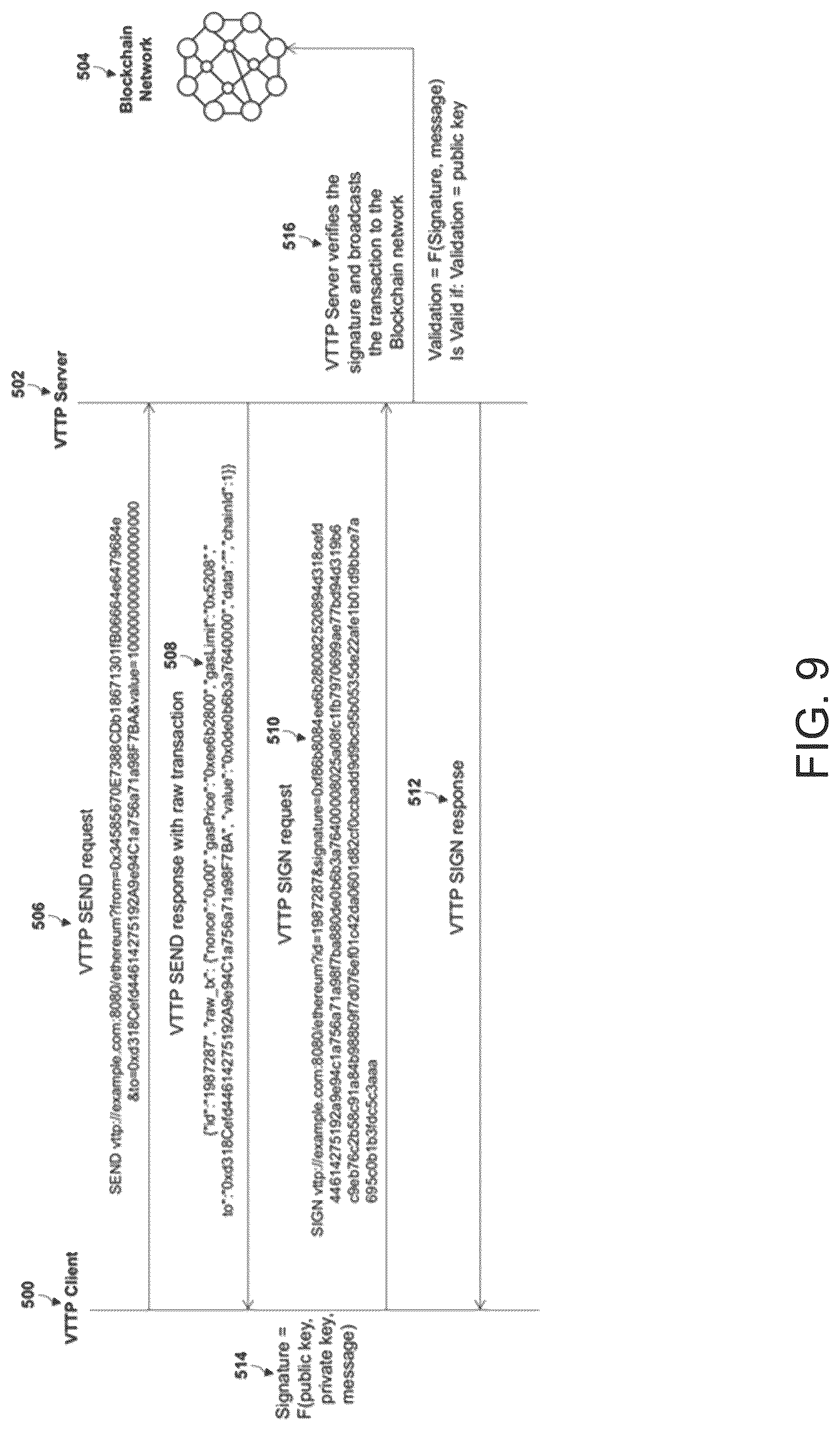 [0043]FIG. 9 is an illustration the transaction signing process in VTTP, according to an embodiment of the invention.