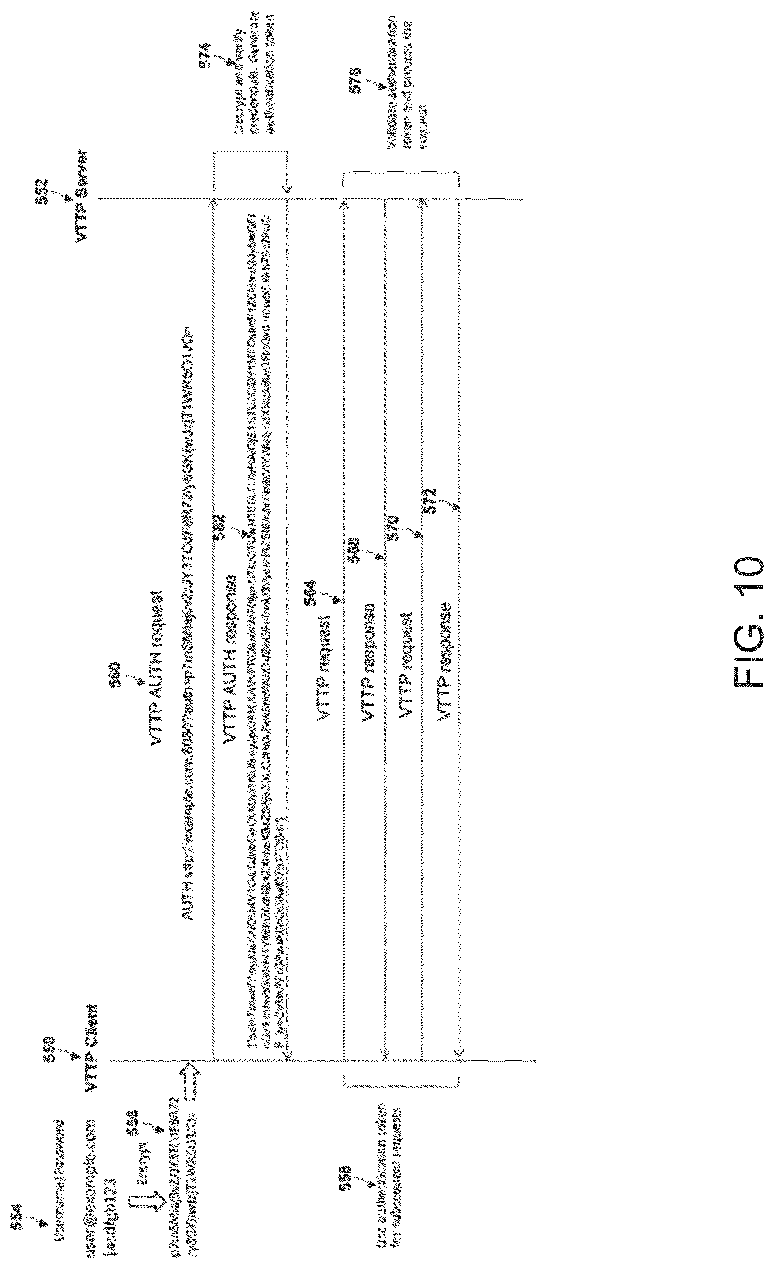 [0044]FIG. 10 is an illustration of the token-based authentication process in VTTP, according to an embodiment of the invention.