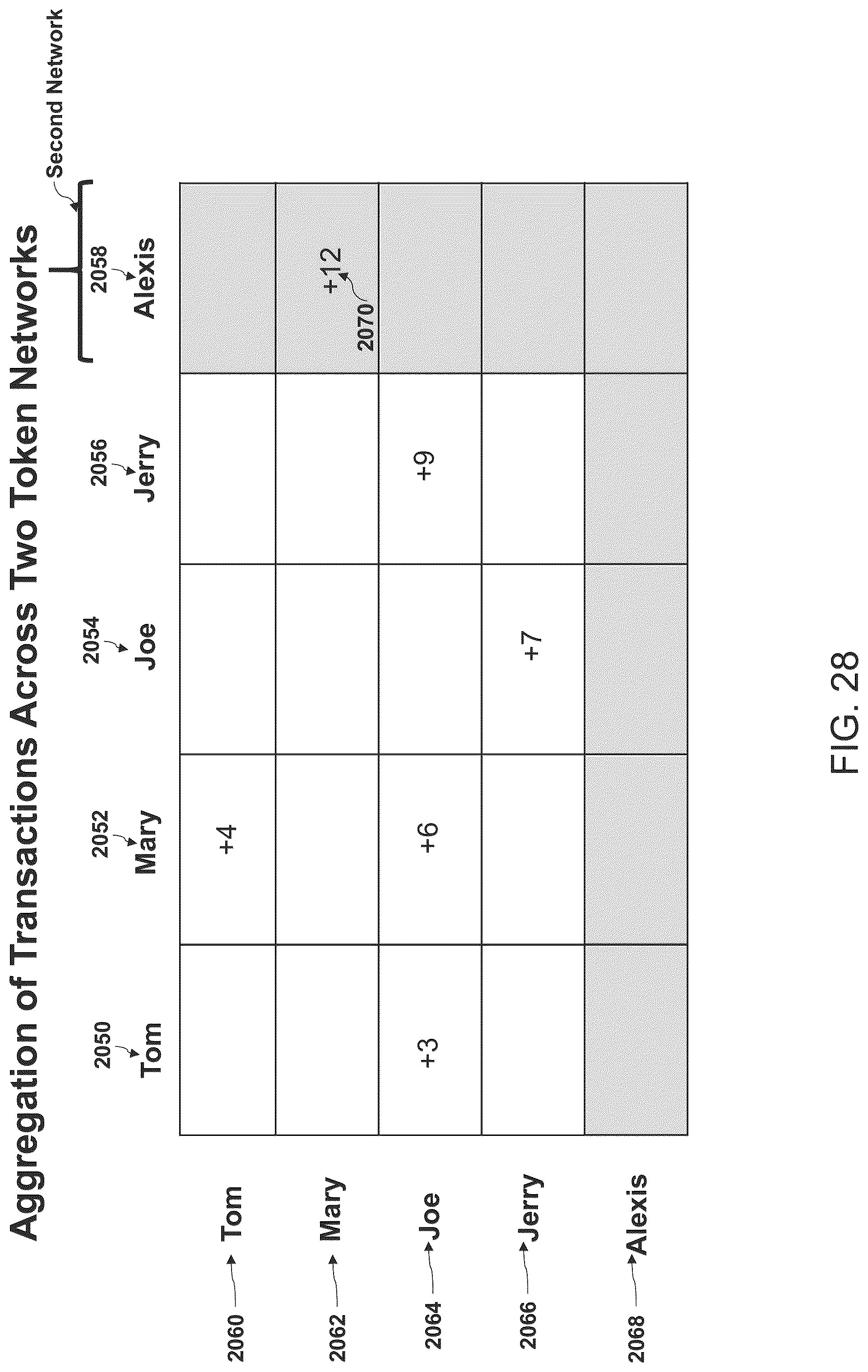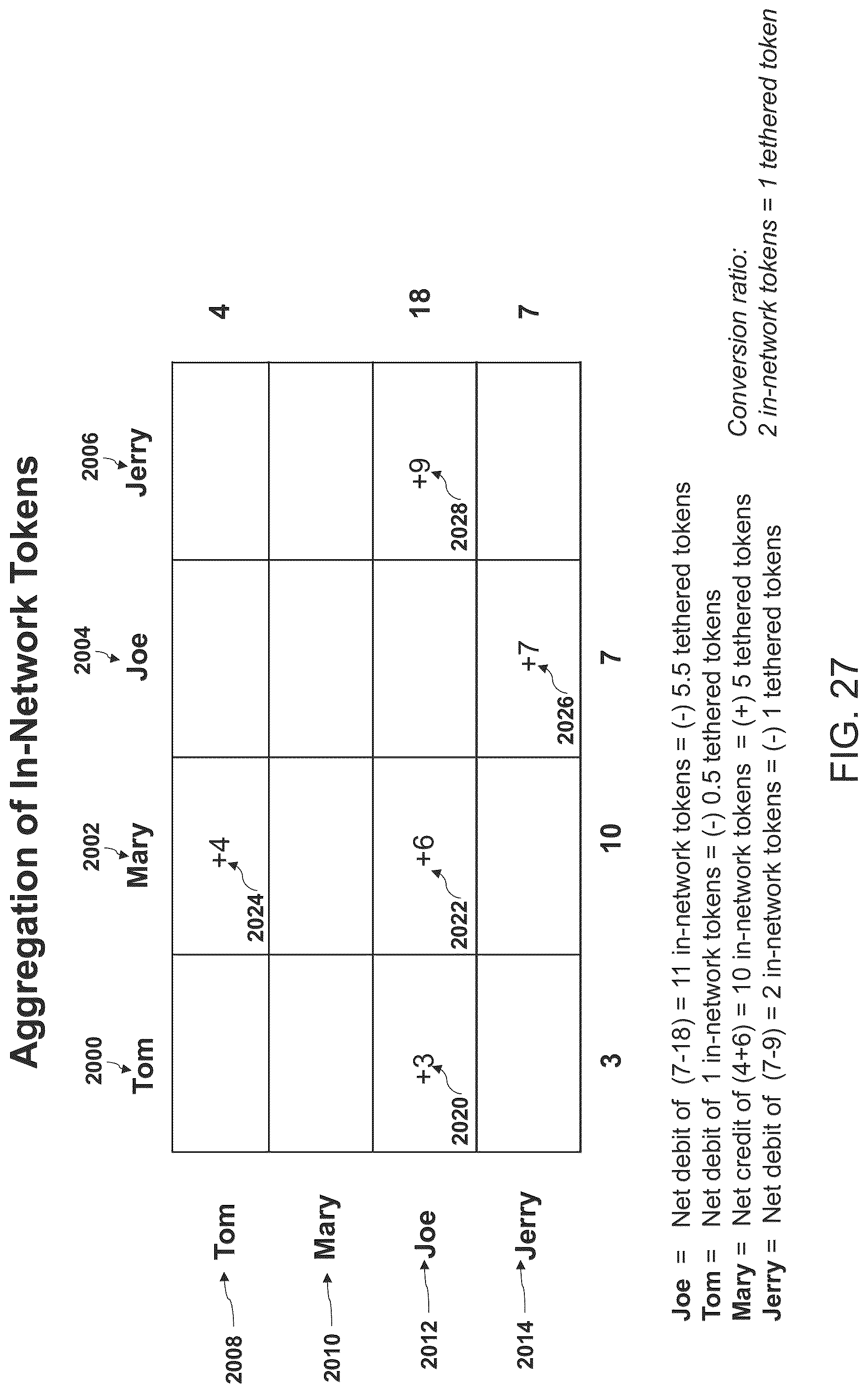 [0061]FIG. 27 is an illustration of an exemplary scenario of aggregation transactions of in-network tokens, according to an embodiment of the invention.
