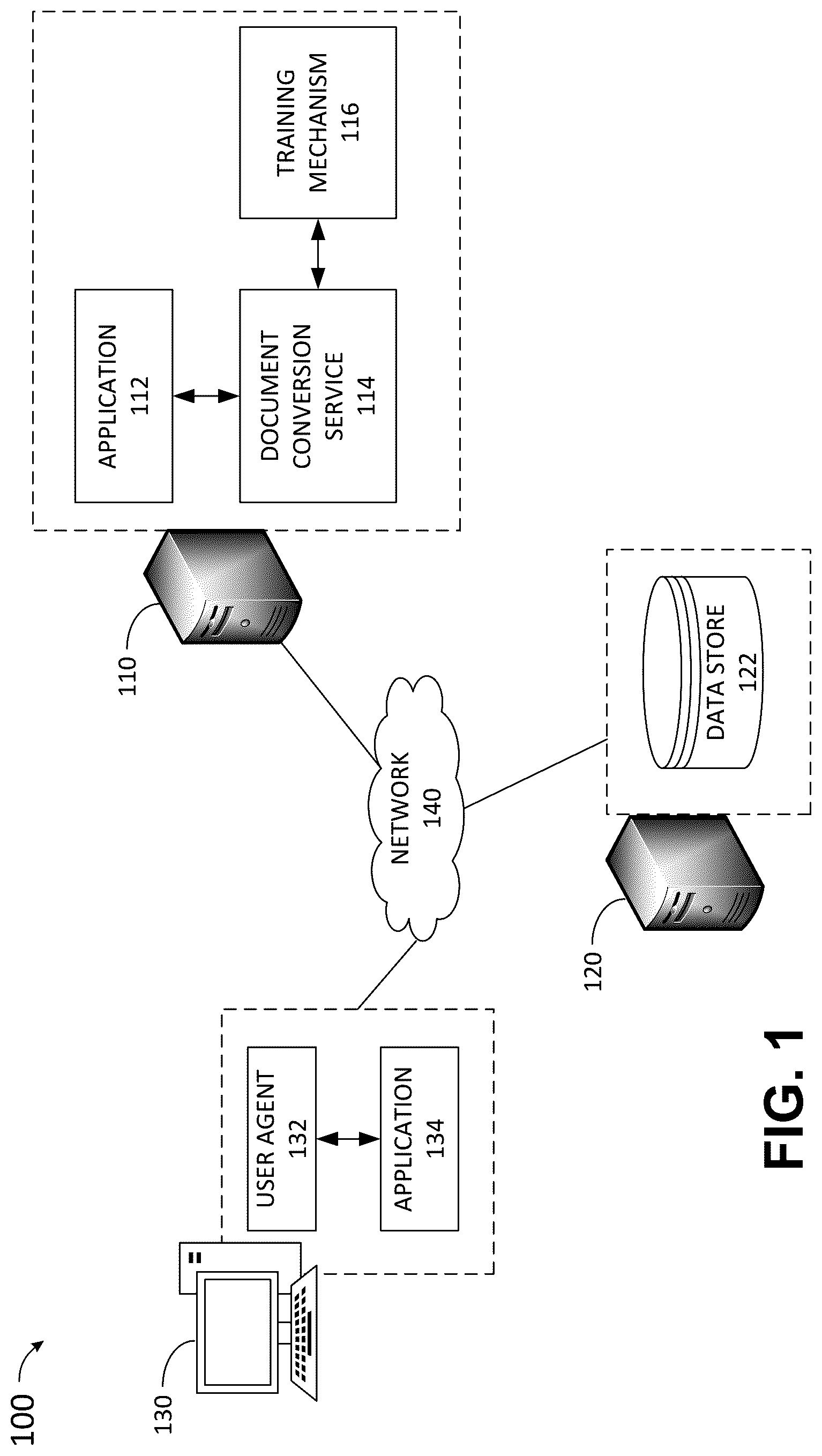 FIG. 3 depicts an example of some elements involved in generating an editable document from a non-editable document.