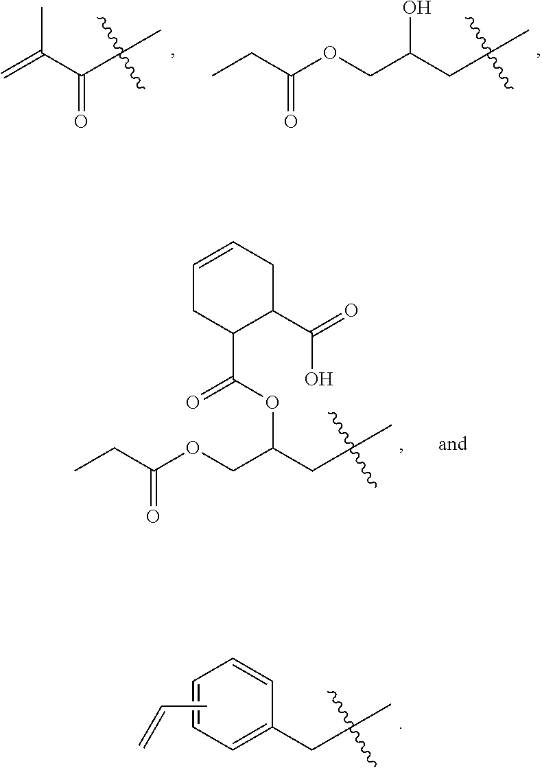 each of R9and R10, independently, is an end group containing a carbon-carbon double bond; and