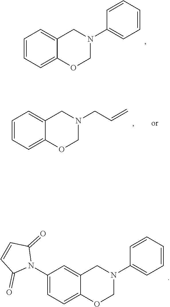 11. The composition of claim 1, wherein the benzoxazine compound is a compound of one of the following structures: