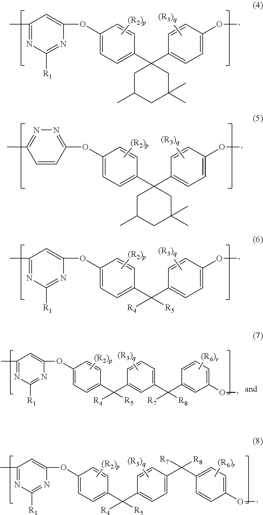 first and second films or a plurality of films; and a woven or non-woven substrate between the first and second films; wherein at least one of the first and second films is the film of 96. The laminate of 97. The laminate of wherein the first film is between the first metal foil and the substrate and the second film is between the second metal foil and the substrate. 98. The laminate of 99. A circuit board for use in an electronic product, comprising the laminate of 100. A curable composition, comprising: