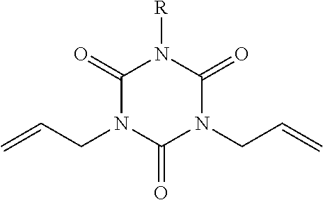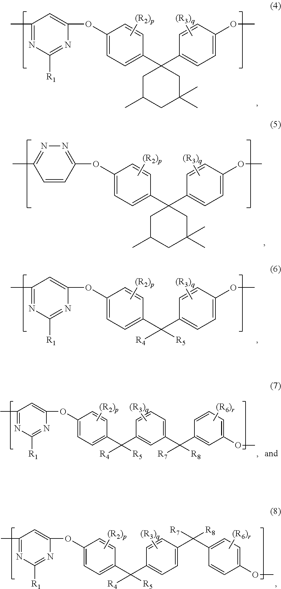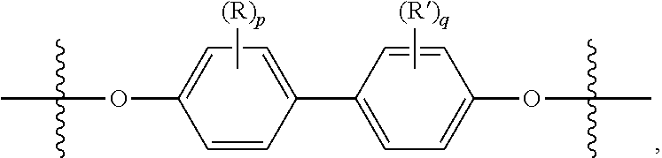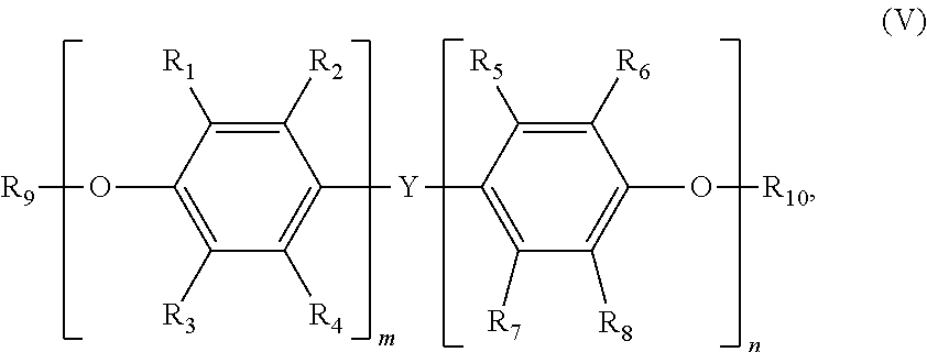 each of m and n, independently, is an integer from 1 to 100; each of R1, R2, R3, R4, R5, R6, R7, and R8, independently, is hydrogen or C1-C12alkyl; each of R9and R10, independently, is an end group containing a carbon-carbon double bond; and Y is a single bond, —C(O)—, —C(S)—, —S(O)—, —S(O)2—, —C(RR′)—, or in which each of R and R′, independently, is hydrogen or C1-C12alkyl, p is an integer from 0 to 4, and q is an integer from 0 to 4. 63. The composition of 64. The composition of 65. The composition of 66. The composition of 67. The composition of 68. The composition of 69. The composition of 70. The composition of 71. The composition of 72. The composition of 73. The composition of 74. The composition of 75. The composition of 76. The composition of 77. The composition of 78. The composition of 79. The composition of 80. The composition of 81. The composition of 82. The composition of 83. The composition of 84. The composition of 85. The composition of 86. The composition of 87. The composition of 88. A film prepared from the composition of 89. The film of 90. The film of 91. The film of 92. An article, comprising: