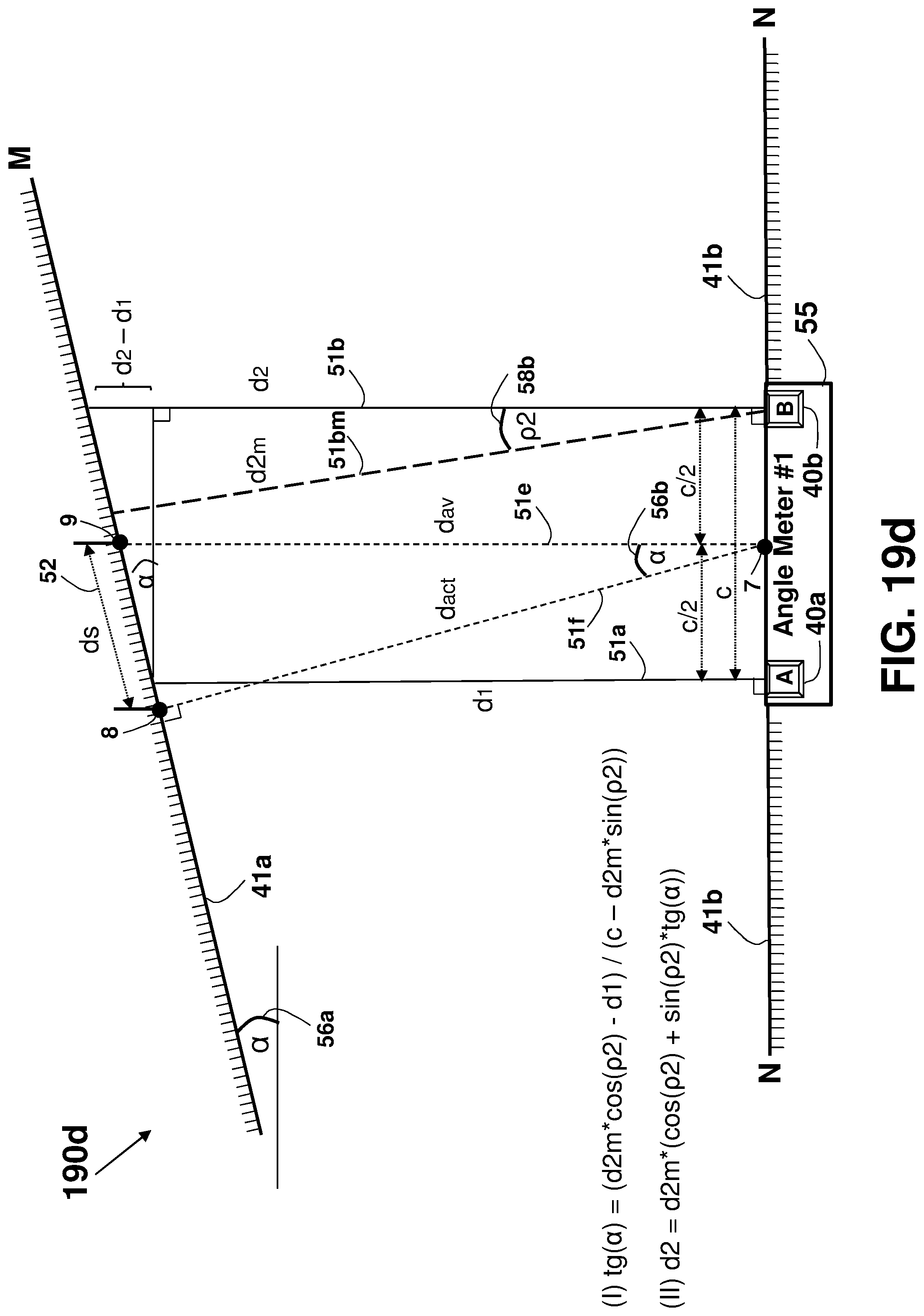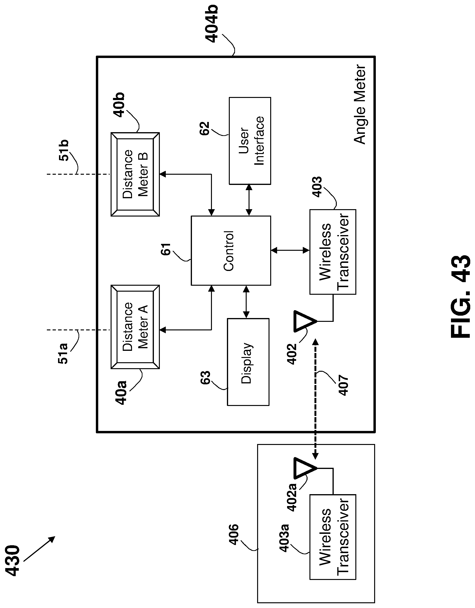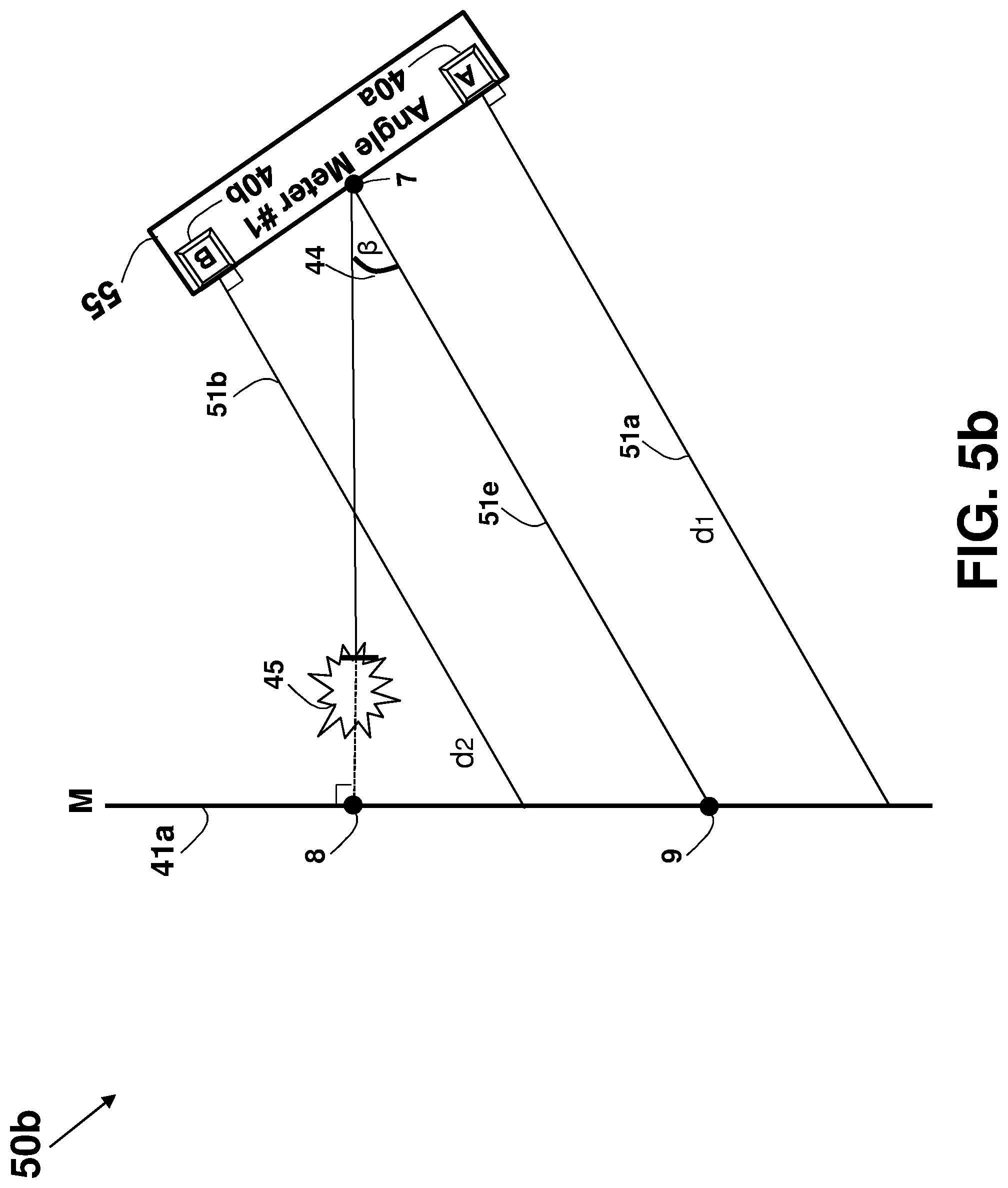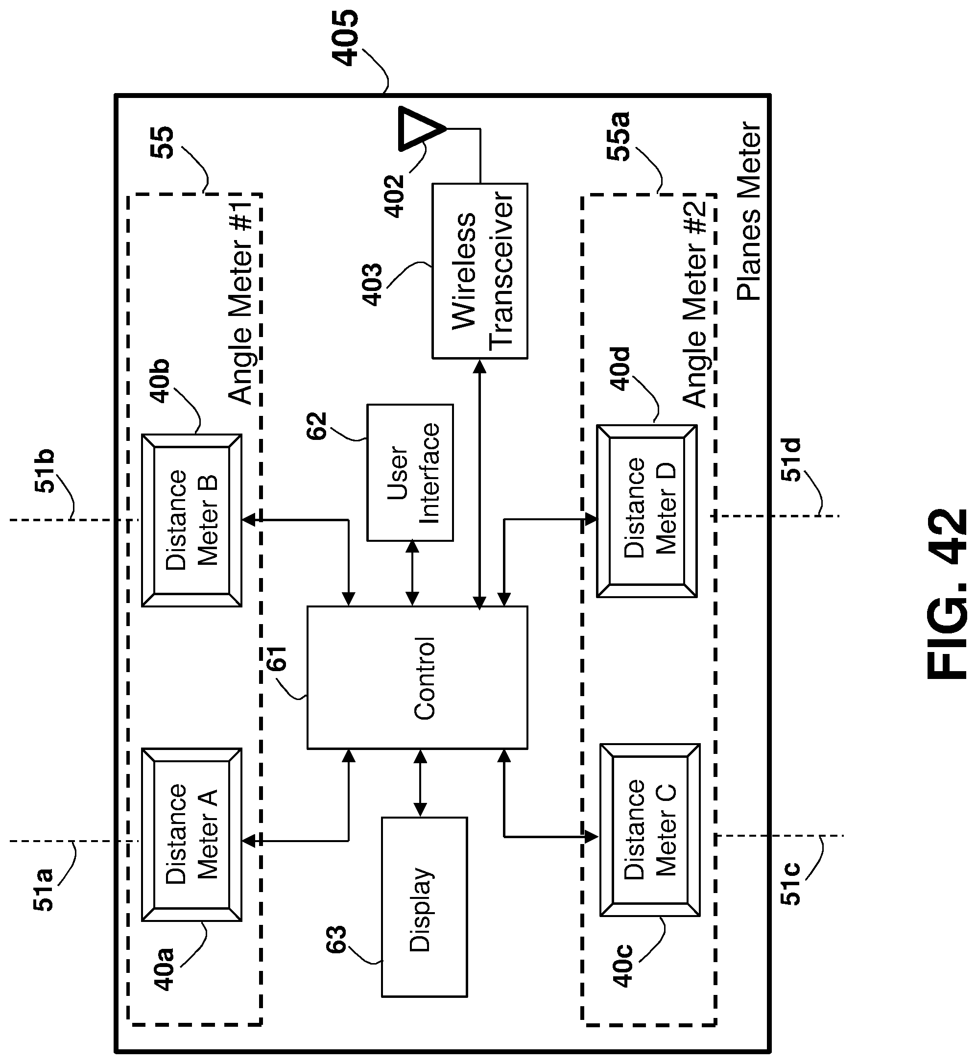 This patent application is a continuation application of U.S. patent application Ser. No. 16/081,901 filed on Sep. 1, 2018, which is a national phase of PCT Application No. PCT/IL2017/050220 filed on Feb. 22, 2017 which claims the benefit of U.S. Provisional Application Ser. No. 62/303,388 that was filed on Mar. 4, 2016, and U.S. Provisional Application Ser. No. 62/373,388 that was filed on Aug. 11, 2016, which are all incorporated herein by reference. This disclosure relates generally to an apparatus and method for accurately measuring distances, areas, volumes, and tilt-angles, and in particular to using multiple distance meters in-cooperation, such as by using parallel distance measurements. Unless otherwise indicated herein, the materials described in this section are not prior art to the claims in this application and are not admitted to be prior art by inclusion in this section. In many trades and industries there is a need for fast and accurate non-contact distance measuring tool. For example, in the construction industry and trades, distance meters (also known as range-finders) are commonly used for many applications as a substitute to the old-fashioned contact-based tape measure, providing speed, accuracy, versatility, convenience, and functionality. Laser distance-measuring devices are widely used in a variety of applications, such as power engineering, hydraulic engineering, architecture, geographic investigation, and athletic ranging, for measuring distance between two stationary objects. By way of example, measurement of wall length is a common requirement for real estate agents, carpenters, carpet layers, painters, architects, interior decorators, builders and others who need to know interior wall dimensions in their respective professions. Distance meters are described in a book authored by J. M. Rueger and Fourth Edition [ISBN-13: 978-3-540-61159-2] published 1996 by Springer-Verlag Berlin Heidelberg, entitled: “ A typical block diagram 10 of a non-contact active distance meter 15 is schematically shown in Any element designed for, or capable of directly or indirectly affecting, changing, producing, or creating a propagating phenomenon, such as propagating waves (over the air, liquid, or solid material) or any other physical phenomenon under an electric signal control may be used as the emitter 11. Typically, a sensor 13 may be used to sense, detect, or measure the phenomenon affected, or propagated, by the emitter 11. The emitter 11 may affect the amount of a property, or of a physical quantity or the magnitude relating to a physical phenomenon, body or substance. Alternatively or in addition, emitter 11 may be used to affect the time derivative thereof, such as the rate of change of the amount, the quantity, or the magnitude. In the case of space related quantity or magnitude, an actuator may affect the linear density, surface density, or volume density, relating to the amount of property per volume. Alternatively or in addition, emitter 11 may affect the flux (or flow) of a property through a cross-section or surface boundary, the flux density, or the current. In the case of a scalar field, emitter 11 may affect the quantity gradient. The emitter 11 may affect the amount of property per unit mass or per mole of substance. A single emitter 11 may be used to measure two or more phenomena. The emitter 11 input signal, the sensor 13 output signal, or both may be conditioned by a signal conditioning circuit. The signal conditioner may involve time, frequency, or magnitude related manipulations, typically adapted to optimally operate, activate, or interface the emitter 11 or the sensor 13. A signal conditioner 6 may be used for conditioning the signal driving or controlling the emitter 11, and a signal conditioner 6′ may be used for conditioning the signal received from the sensor 13, as part of a distance meter 15′ shown in an arrangement 10 The signal conditioner 6 or 6′ (or both) may use any one of the schemes, components, circuits, interfaces, or manipulations described in an handbook published 2004-2012 by Measurement Computing Corporation entitled: “ The correlator 19 is typically implemented using one of four predominant methods for active distance measurement: interferometric, triangulation, pulsed time-of-flight (TOF), and phase measuring. Interferometric methods may result in accuracies of less than one micrometer over ranges of up to several millimeters, while triangulation techniques may result in devices with accuracy in the micrometer range, but may be limited to measure distances out to several inches. Various techniques that may be used by the correlator 19 are described in a paper by Shahram Mohammad Nejad and Saeed Olyaee published in the Quarterly Journal of Technology & Education Vol. 1, No. 1, Autumn 2006, entitled: “ Reflection (or backscattering) is the change in direction of a wavefront at an interface between two different media, so that the wavefront returns into the medium from which it originated. Common examples include the reflection of light, sound, and water waves, and the law of reflection is that for specular reflection the angle at which the wave is incident on the surface equals the angle at which it is reflected. In one example, a single component, typically a transducer, is used as both the emitter 11 and the sensor 13. An example of a distance meter 15″ using a transducer 31 is shown in an arrangement 30 in In one example, a distance meter 15 Laser. A laser (an acronym for “Light Amplification by Stimulated Emission of Radiation”) is a technology or device that emits light through a process of optical amplification based on the stimulated emission of electromagnetic radiation, where the term “light” includes electromagnetic radiation of any frequency, not only just the visible light, such as infrared laser, ultraviolet laser, or X-ray laser. A laser differs from other sources of light in that it emits light coheren