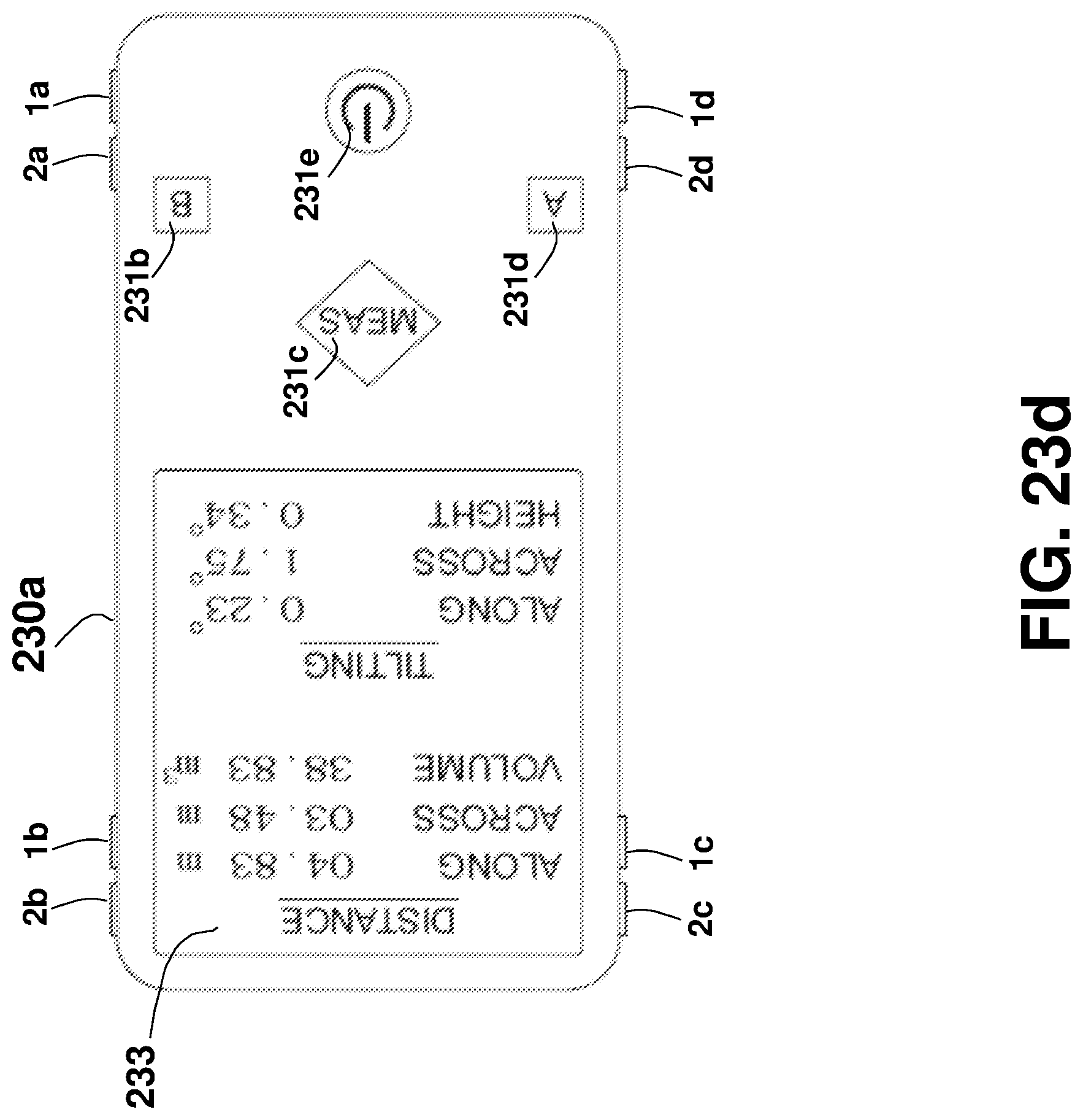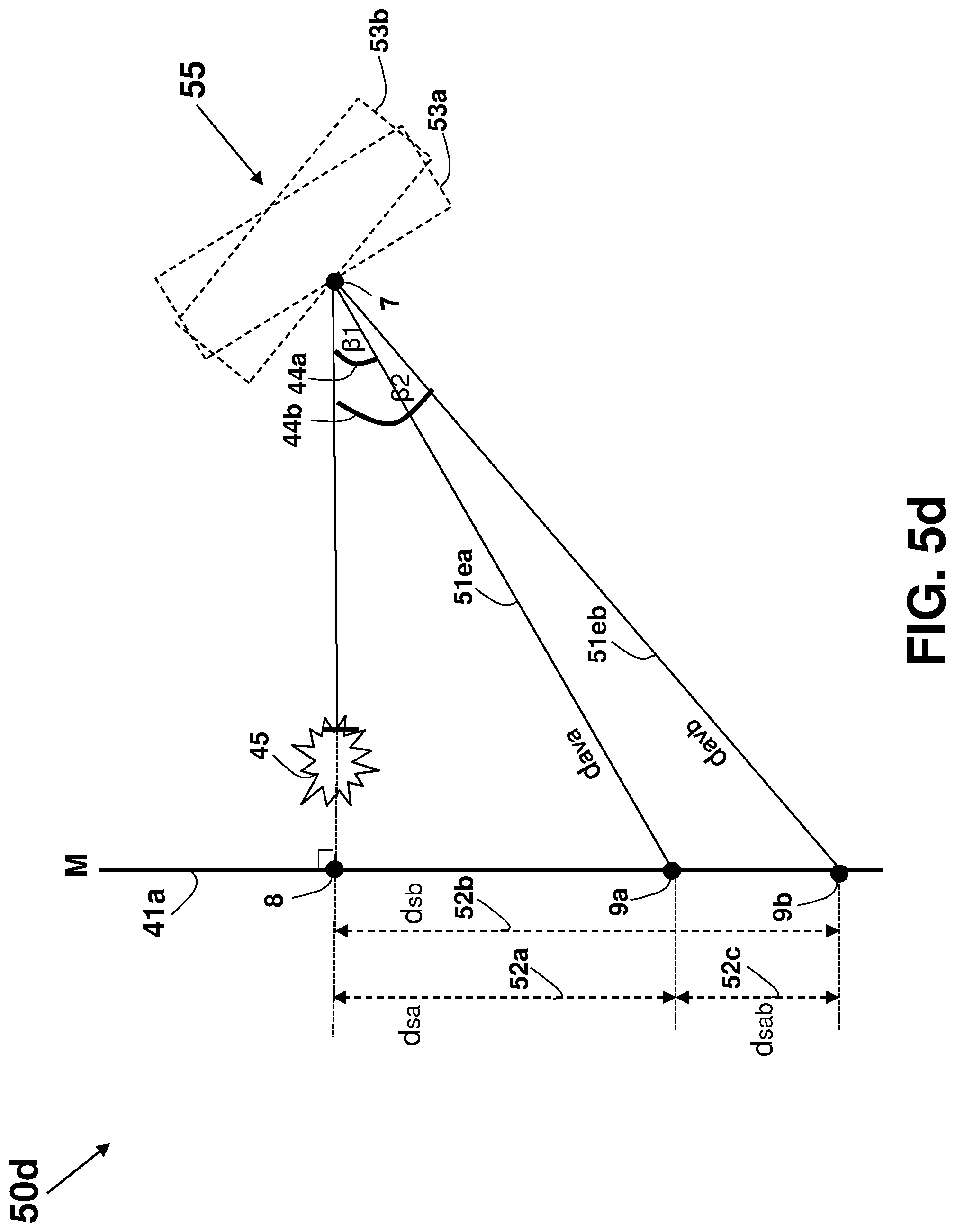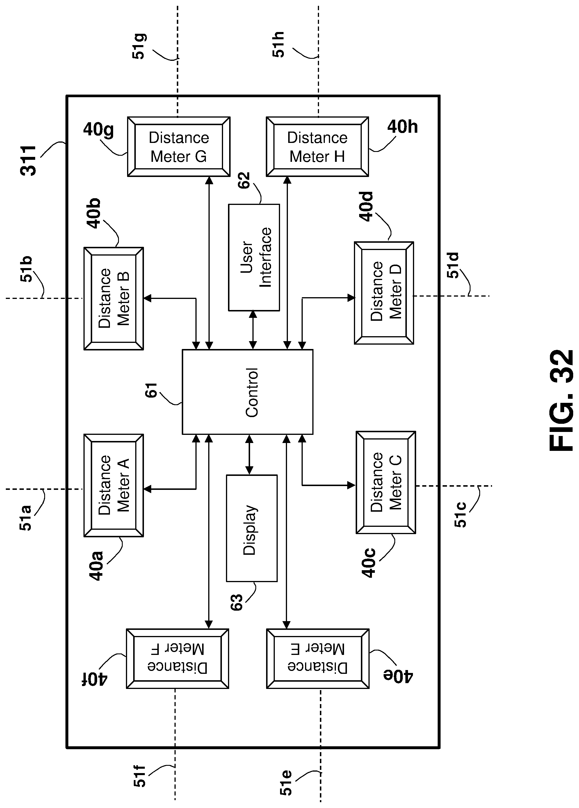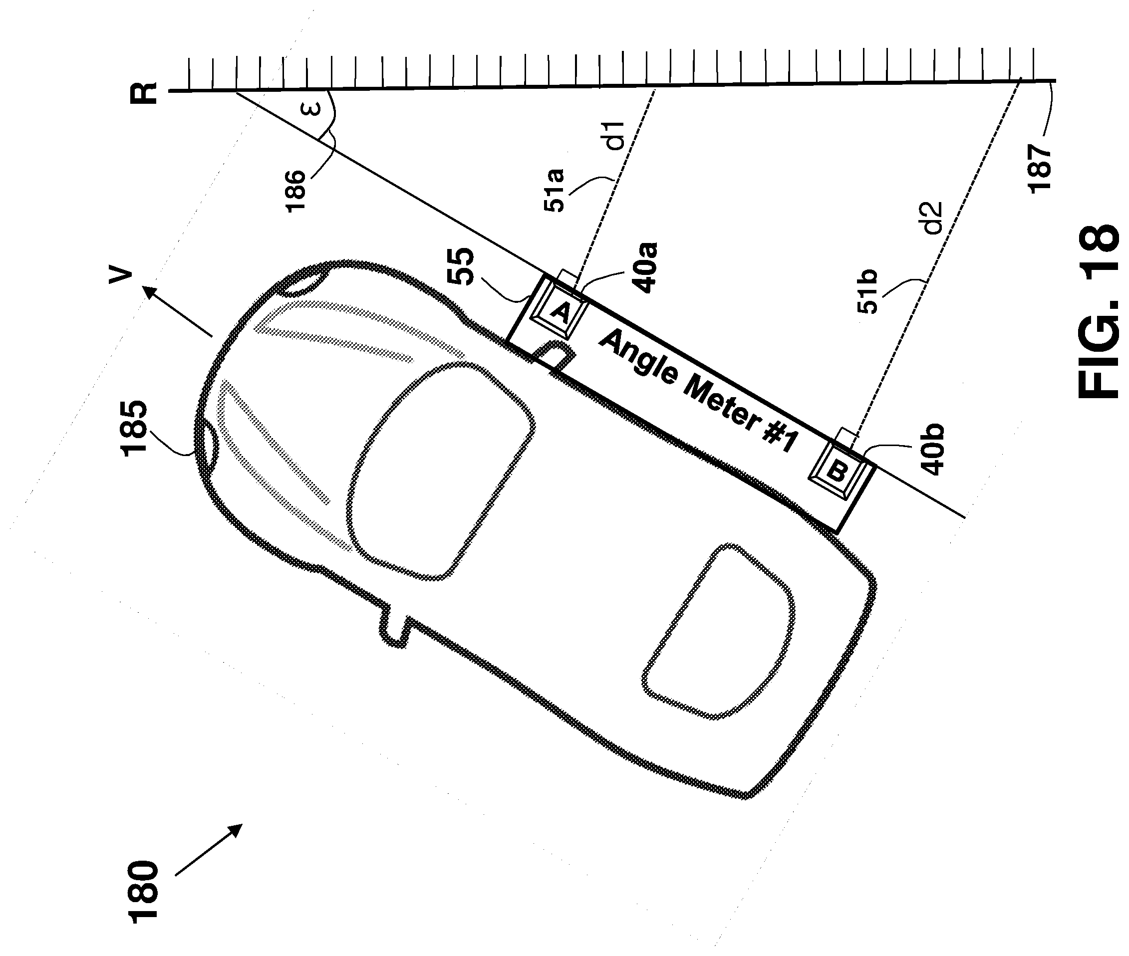 This patent application is a continuation application of U.S. patent application Ser. No. 16/081,901 filed on Sep. 1, 2018, which is a national phase of PCT Application No. PCT/IL2017/050220 filed on Feb. 22, 2017 which claims the benefit of U.S. Provisional Application Ser. No. 62/303,388 that was filed on Mar. 4, 2016, and U.S. Provisional Application Ser. No. 62/373,388 that was filed on Aug. 11, 2016, which are all incorporated herein by reference. This disclosure relates generally to an apparatus and method for accurately measuring distances, areas, volumes, and tilt-angles, and in particular to using multiple distance meters in-cooperation, such as by using parallel distance measurements. Unless otherwise indicated herein, the materials described in this section are not prior art to the claims in this application and are not admitted to be prior art by inclusion in this section. In many trades and industries there is a need for fast and accurate non-contact distance measuring tool. For example, in the construction industry and trades, distance meters (also known as range-finders) are commonly used for many applications as a substitute to the old-fashioned contact-based tape measure, providing speed, accuracy, versatility, convenience, and functionality. Laser distance-measuring devices are widely used in a variety of applications, such as power engineering, hydraulic engineering, architecture, geographic investigation, and athletic ranging, for measuring distance between two stationary objects. By way of example, measurement of wall length is a common requirement for real estate agents, carpenters, carpet layers, painters, architects, interior decorators, builders and others who need to know interior wall dimensions in their respective professions. Distance meters are described in a book authored by J. M. Rueger and Fourth Edition [ISBN-13: 978-3-540-61159-2] published 1996 by Springer-Verlag Berlin Heidelberg, entitled: “ A typical block diagram 10 of a non-contact active distance meter 15 is schematically shown in Any element designed for, or capable of directly or indirectly affecting, changing, producing, or creating a propagating phenomenon, such as propagating waves (over the air, liquid, or solid material) or any other physical phenomenon under an electric signal control may be used as the emitter 11. Typically, a sensor 13 may be used to sense, detect, or measure the phenomenon affected, or propagated, by the emitter 11. The emitter 11 may affect the amount of a property, or of a physical quantity or the magnitude relating to a physical phenomenon, body or substance. Alternatively or in addition, emitter 11 may be used to affect the time derivative thereof, such as the rate of change of the amount, the quantity, or the magnitude. In the case of space related quantity or magnitude, an actuator may affect the linear density, surface density, or volume density, relating to the amount of property per volume. Alternatively or in addition, emitter 11 may affect the flux (or flow) of a property through a cross-section or surface boundary, the flux density, or the current. In the case of a scalar field, emitter 11 may affect the quantity gradient. The emitter 11 may affect the amount of property per unit mass or per mole of substance. A single emitter 11 may be used to measure two or more phenomena. The emitter 11 input signal, the sensor 13 output signal, or both may be conditioned by a signal conditioning circuit. The signal conditioner may involve time, frequency, or magnitude related manipulations, typically adapted to optimally operate, activate, or interface the emitter 11 or the sensor 13. A signal conditioner 6 may be used for conditioning the signal driving or controlling the emitter 11, and a signal conditioner 6′ may be used for conditioning the signal received from the sensor 13, as part of a distance meter 15′ shown in an arrangement 10 The signal conditioner 6 or 6′ (or both) may use any one of the schemes, components, circuits, interfaces, or manipulations described in an handbook published 2004-2012 by Measurement Computing Corporation entitled: “ The correlator 19 is typically implemented using one of four predominant methods for active distance measurement: interferometric, triangulation, pulsed time-of-flight (TOF), and phase measuring. Interferometric methods may result in accuracies of less than one micrometer over ranges of up to several millimeters, while triangulation techniques may result in devices with accuracy in the micrometer range, but may be limited to measure distances out to several inches. Various techniques that may be used by the correlator 19 are described in a paper by Shahram Mohammad Nejad and Saeed Olyaee published in the Quarterly Journal of Technology & Education Vol. 1, No. 1, Autumn 2006, entitled: “ Reflection (or backscattering) is the change in direction of a wavefront at an interface between two different media, so that the wavefront returns into the medium from which it originated. Common examples include the reflection of light, sound, and water waves, and the law of reflection is that for specular reflection the angle at which the wave is incident on the surface equals the angle at which it is reflected. In one example, a single component, typically a transducer, is used as both the emitter 11 and the sensor 13. An example of a distance meter 15″ using a transducer 31 is shown in an arrangement 30 in In one example, a distance meter 15 Laser. A laser (an acronym for “Light Amplification by Stimulated Emission of Radiation”) is a technology or device that emits light through a process of optical amplification based on the stimulated emission of electromagnetic radiation, where the term “light” includes electromagnetic radiation of any frequency, not only just the visible light, such as infrared laser, ultraviolet laser, or X-ray laser. A laser differs from other sources of light in that it emits light coheren