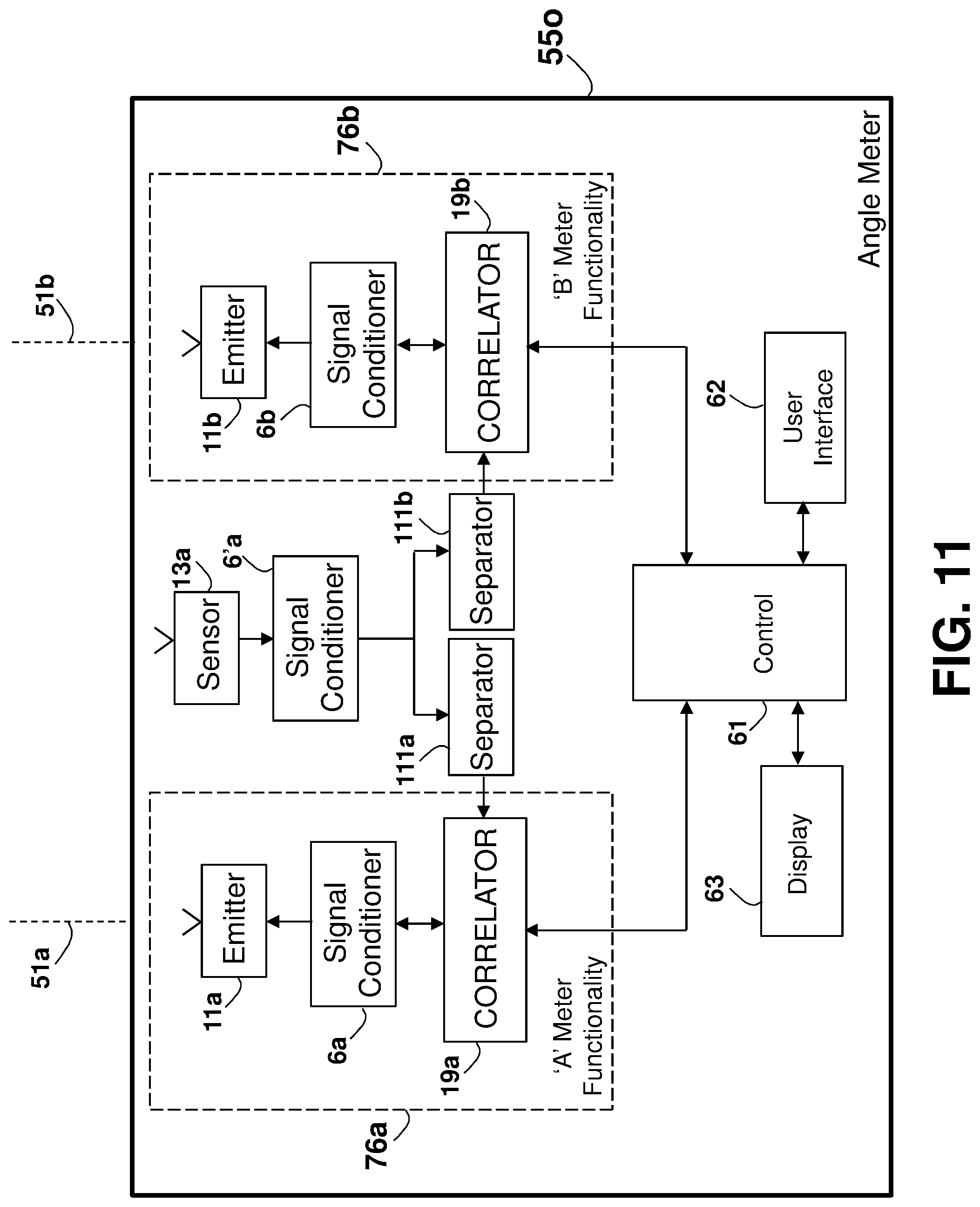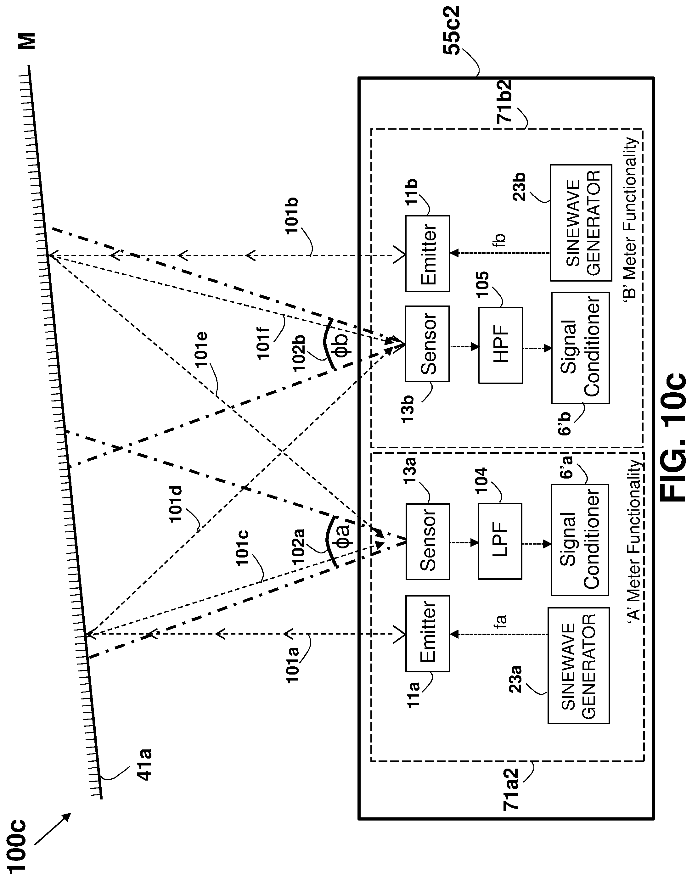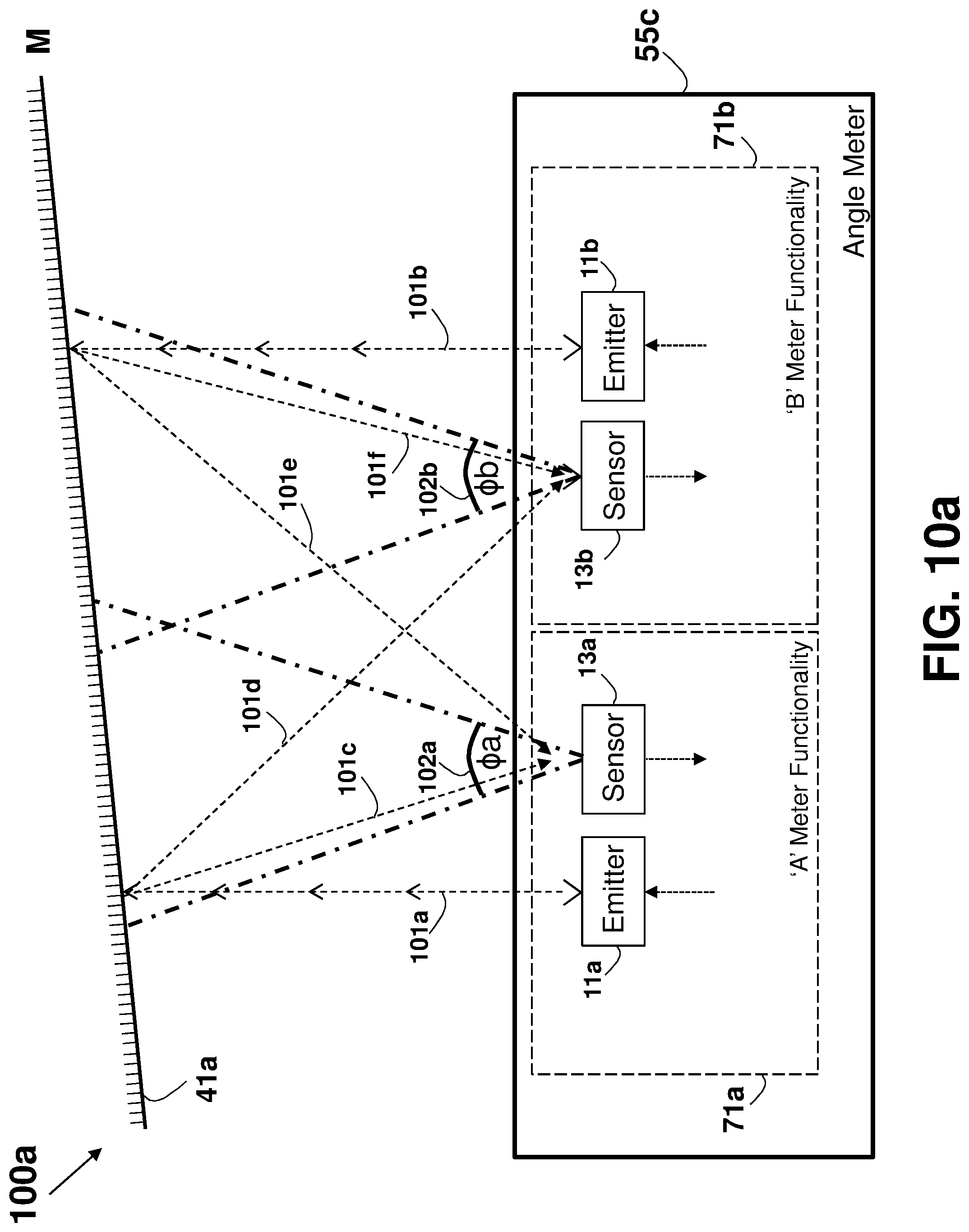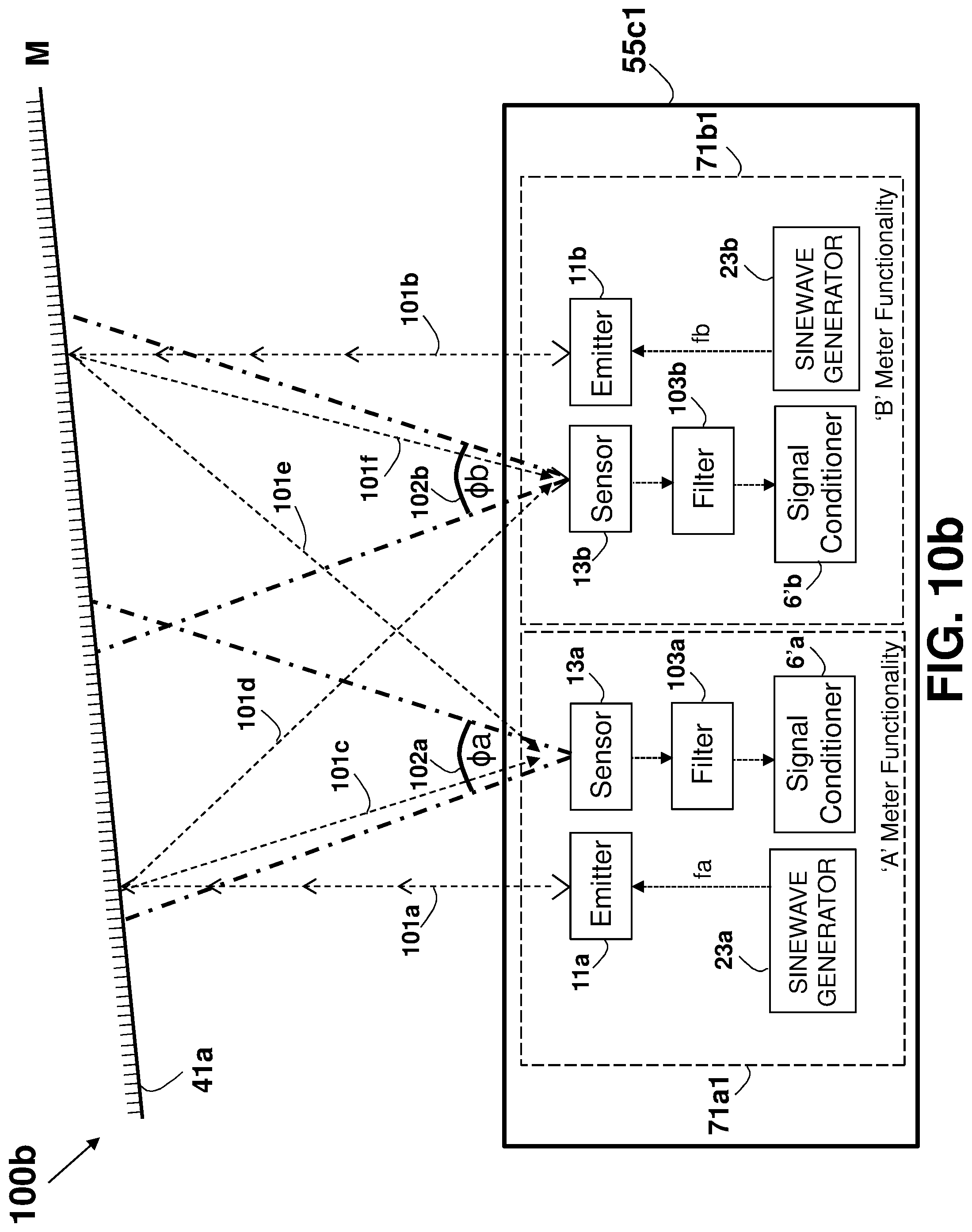 This patent application is a continuation application of U.S. patent application Ser. No. 16/081,901 filed on Sep. 1, 2018, which is a national phase of PCT Application No. PCT/IL2017/050220 filed on Feb. 22, 2017 which claims the benefit of U.S. Provisional Application Ser. No. 62/303,388 that was filed on Mar. 4, 2016, and U.S. Provisional Application Ser. No. 62/373,388 that was filed on Aug. 11, 2016, which are all incorporated herein by reference. This disclosure relates generally to an apparatus and method for accurately measuring distances, areas, volumes, and tilt-angles, and in particular to using multiple distance meters in-cooperation, such as by using parallel distance measurements. Unless otherwise indicated herein, the materials described in this section are not prior art to the claims in this application and are not admitted to be prior art by inclusion in this section. In many trades and industries there is a need for fast and accurate non-contact distance measuring tool. For example, in the construction industry and trades, distance meters (also known as range-finders) are commonly used for many applications as a substitute to the old-fashioned contact-based tape measure, providing speed, accuracy, versatility, convenience, and functionality. Laser distance-measuring devices are widely used in a variety of applications, such as power engineering, hydraulic engineering, architecture, geographic investigation, and athletic ranging, for measuring distance between two stationary objects. By way of example, measurement of wall length is a common requirement for real estate agents, carpenters, carpet layers, painters, architects, interior decorators, builders and others who need to know interior wall dimensions in their respective professions. Distance meters are described in a book authored by J. M. Rueger and Fourth Edition [ISBN-13: 978-3-540-61159-2] published 1996 by Springer-Verlag Berlin Heidelberg, entitled: “ A typical block diagram 10 of a non-contact active distance meter 15 is schematically shown in Any element designed for, or capable of directly or indirectly affecting, changing, producing, or creating a propagating phenomenon, such as propagating waves (over the air, liquid, or solid material) or any other physical phenomenon under an electric signal control may be used as the emitter 11. Typically, a sensor 13 may be used to sense, detect, or measure the phenomenon affected, or propagated, by the emitter 11. The emitter 11 may affect the amount of a property, or of a physical quantity or the magnitude relating to a physical phenomenon, body or substance. Alternatively or in addition, emitter 11 may be used to affect the time derivative thereof, such as the rate of change of the amount, the quantity, or the magnitude. In the case of space related quantity or magnitude, an actuator may affect the linear density, surface density, or volume density, relating to the amount of property per volume. Alternatively or in addition, emitter 11 may affect the flux (or flow) of a property through a cross-section or surface boundary, the flux density, or the current. In the case of a scalar field, emitter 11 may affect the quantity gradient. The emitter 11 may affect the amount of property per unit mass or per mole of substance. A single emitter 11 may be used to measure two or more phenomena. The emitter 11 input signal, the sensor 13 output signal, or both may be conditioned by a signal conditioning circuit. The signal conditioner may involve time, frequency, or magnitude related manipulations, typically adapted to optimally operate, activate, or interface the emitter 11 or the sensor 13. A signal conditioner 6 may be used for conditioning the signal driving or controlling the emitter 11, and a signal conditioner 6′ may be used for conditioning the signal received from the sensor 13, as part of a distance meter 15′ shown in an arrangement 10 The signal conditioner 6 or 6′ (or both) may use any one of the schemes, components, circuits, interfaces, or manipulations described in an handbook published 2004-2012 by Measurement Computing Corporation entitled: “ The correlator 19 is typically implemented using one of four predominant methods for active distance measurement: interferometric, triangulation, pulsed time-of-flight (TOF), and phase measuring. Interferometric methods may result in accuracies of less than one micrometer over ranges of up to several millimeters, while triangulation techniques may result in devices with accuracy in the micrometer range, but may be limited to measure distances out to several inches. Various techniques that may be used by the correlator 19 are described in a paper by Shahram Mohammad Nejad and Saeed Olyaee published in the Quarterly Journal of Technology & Education Vol. 1, No. 1, Autumn 2006, entitled: “ Reflection (or backscattering) is the change in direction of a wavefront at an interface between two different media, so that the wavefront returns into the medium from which it originated. Common examples include the reflection of light, sound, and water waves, and the law of reflection is that for specular reflection the angle at which the wave is incident on the surface equals the angle at which it is reflected. In one example, a single component, typically a transducer, is used as both the emitter 11 and the sensor 13. An example of a distance meter 15″ using a transducer 31 is shown in an arrangement 30 in In one example, a distance meter 15 Laser. A laser (an acronym for “Light Amplification by Stimulated Emission of Radiation”) is a technology or device that emits light through a process of optical amplification based on the stimulated emission of electromagnetic radiation, where the term “light” includes electromagnetic radiation of any frequency, not only just the visible light, such as infrared laser, ultraviolet laser, or X-ray laser. A laser differs from other sources of light in that it emits light coheren