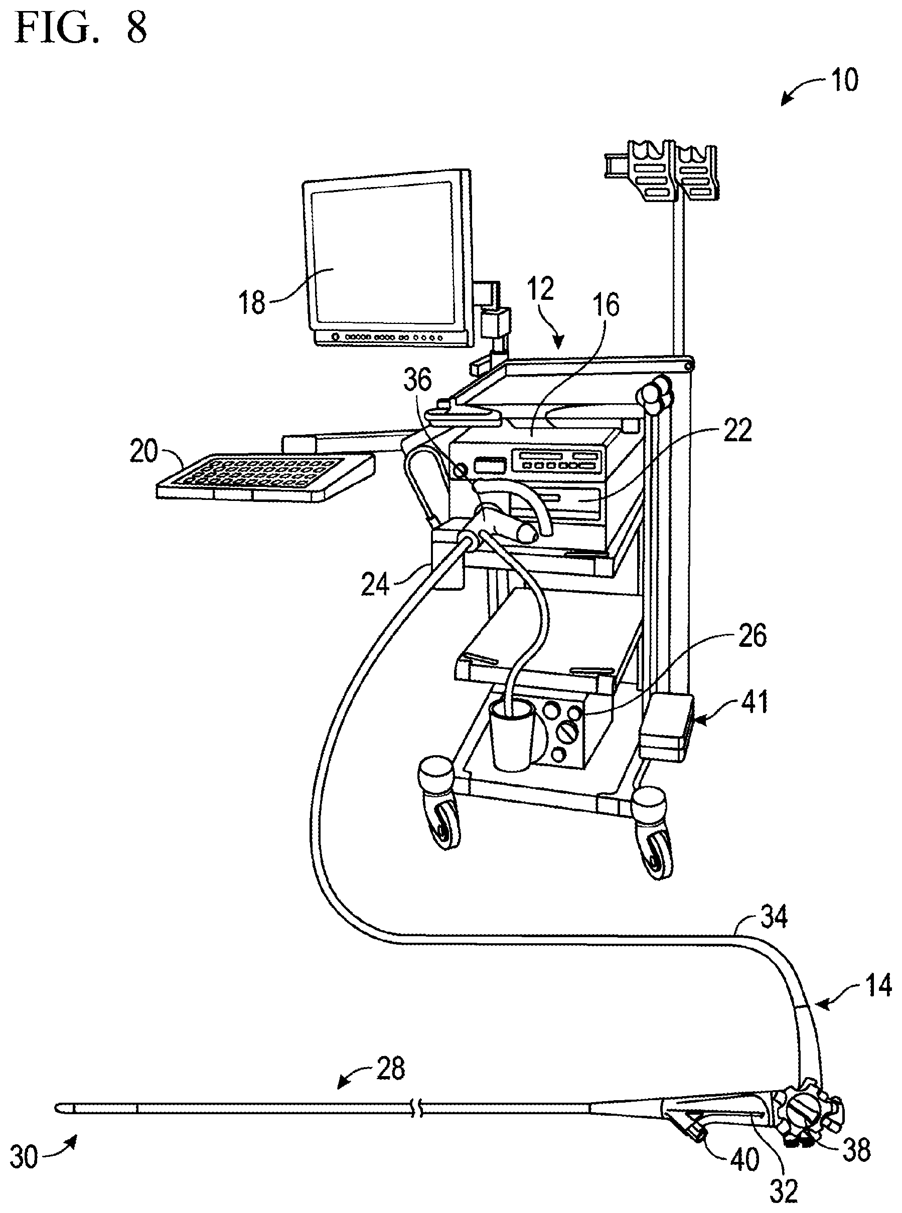 19. The endoscopic system of claim 16, comprising a controller circuit configured to: