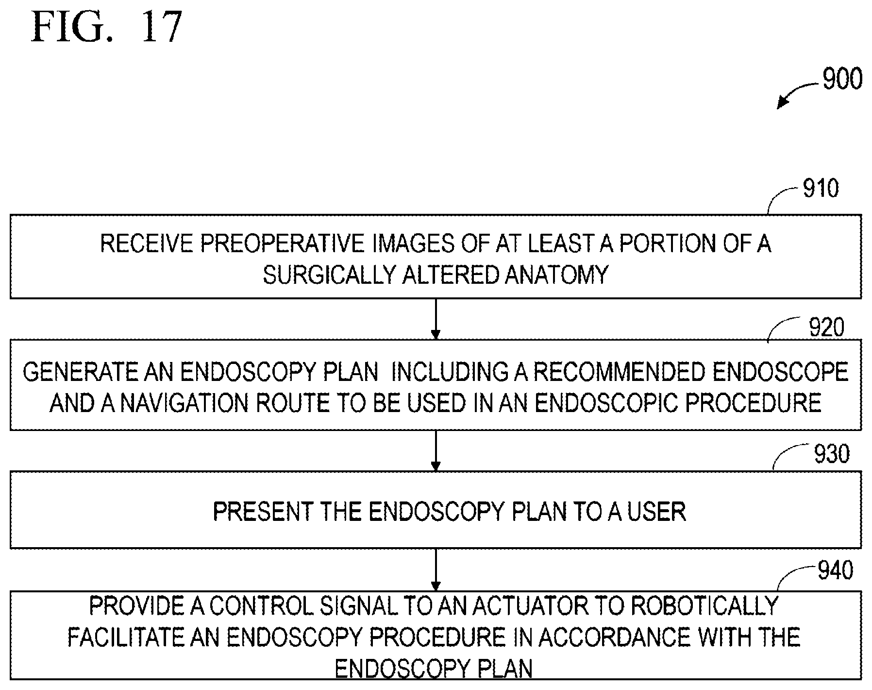 (21th aspect) The method of 20th aspect, wherein the surgically altered anatomy includes an altered gastrointestinal (GI) tract, and wherein the endoscopy plan is with regard to passing the selected endoscope through the altered GI tract into an pancreaticobiliary anatomy.