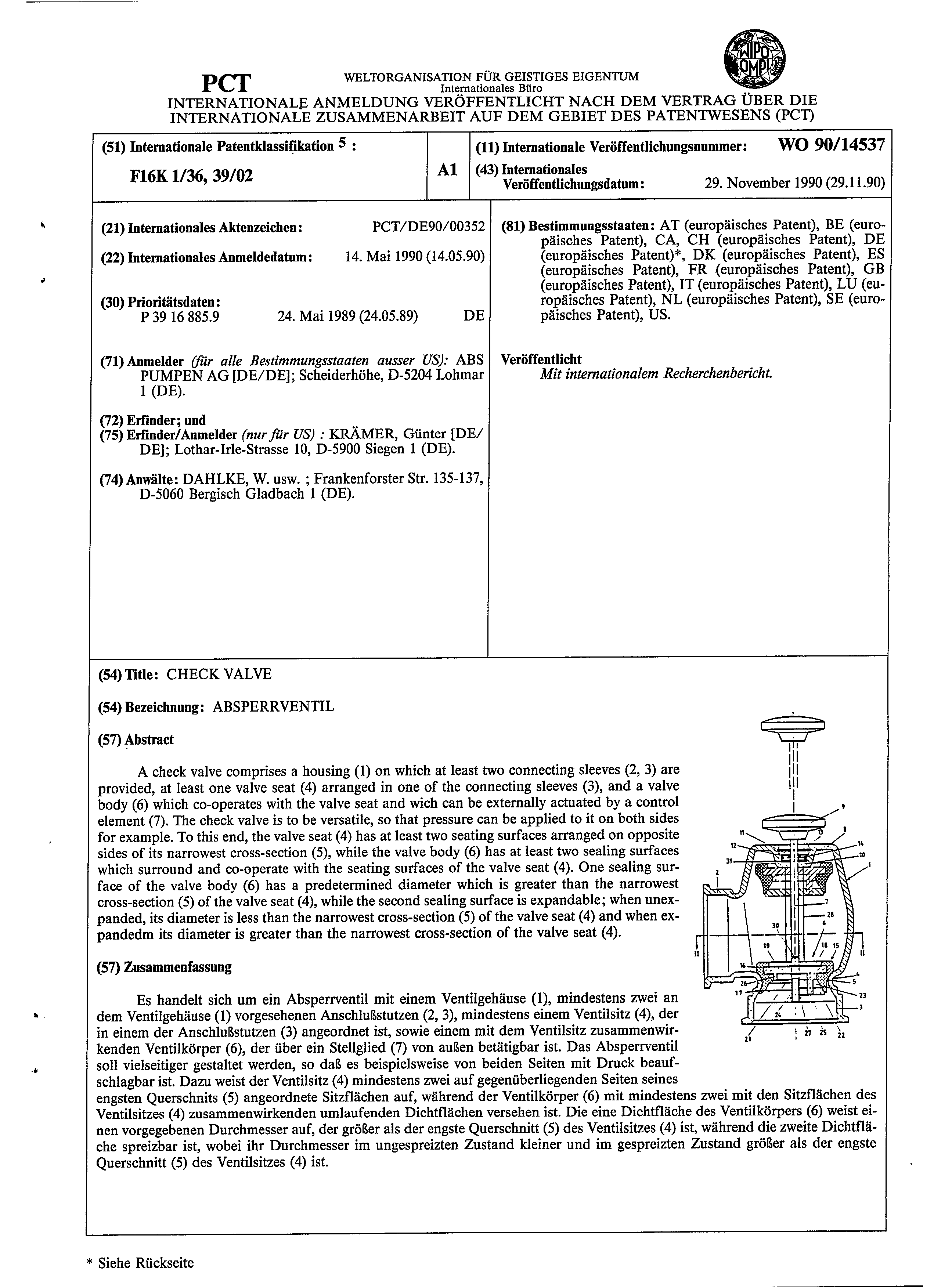 A check valve comprises a housing (1) on which at least two connecting sleeves (2, 3) are provided, at least one valve seat (4) arranged in one of the connecting sleeves (3), and a valve body (6) which co-operates with the valve seat and wich can be externally actuated by a control element (7). The check valve is to be versatile, so that pressure can be applied to it on both sides for example. To this end, the valve seat (4) has at least two seating surfaces arranged on opposite sides of its narrowest cross-section (5), while the valve body (6) has at least two sealing surfaces which surround and co-operate with the seating surfaces of the valve seat (4). One sealing surface of the valve body (6) has a predetermined diameter which is greater than the narrowest cross-section (5) of the valve seat (4), while the second sealing surface is expandable; when unexpanded, its diameter is less than the narrowest cross-section (5) of the valve seat (4) and when expandedm its diameter is greater than the narrowest cross-section of the valve seat (4).