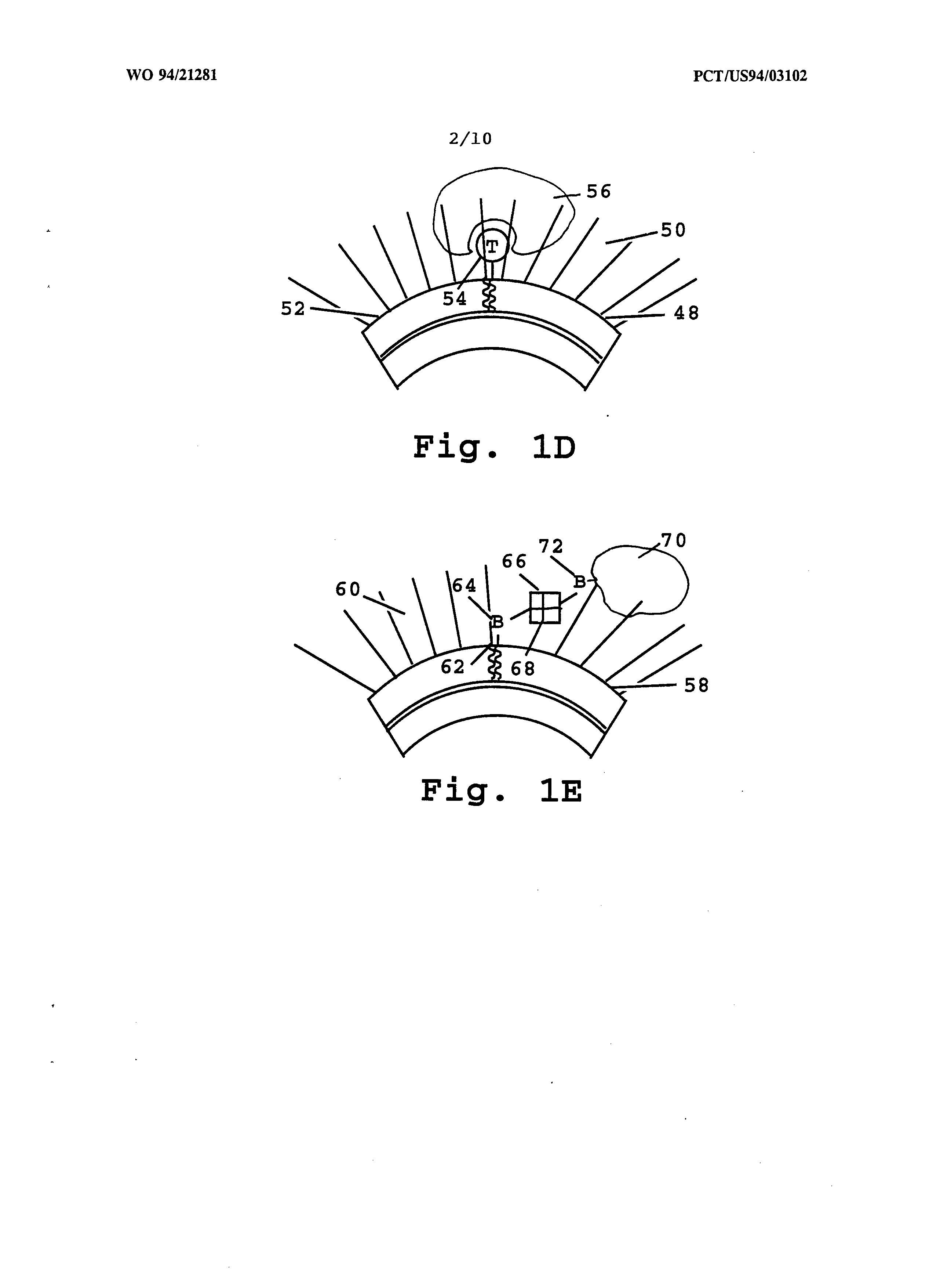 surface, with a very slow dissociation rate if any. As in the composition described with respect to Fig. 1C, the enzyme is surrounded by, but not covalently linked to, the PEG chains which form the polymer layer on the liposome surface. An important feature of this composition is that enzymes having a high affinity for the enzyme inhibitors may be attached to the liposome surface with a polymer layer by covalent or noncovalent inhibitor substrate binding. In a final embodiment, illustrated in Figure IE, the polypeptide in the composition is a biotinylated polypeptide attached to the liposome outer surface by specific, high- affinity binding to avidin carried on the liposome outer surface. The avidin is bound noncovalently to the liposome outer surface by high-affinity interactions with biotin which has been used to derivatize lipid head groups on the liposome surface. The figure shows a liposome bilayer portion 58 with a layer 60 of PEG chains, as above. The liposome outer surface contains a number of lipid polar head groups, such as lipid polar head group 62, which have been derivatized by biotin. To a biotin molecule, such as biotin molecule 64, is bound an avidin molecule, such as avidin molecule 66. Each avidin molecule contains four high-affinity biotin binding sites, such as biotin binding site 68. To one of these sites is attached the liposome bound biotin as previously indicated. To one or more of the free-remaining sites can be bound a biotinylated polypeptide, such as biotinylated polypeptide 70, which is derivatized by a biotin molecule, such as biotin molecule 72. As in all the above-described compositions, the polypeptide is surrounded by, but not covalently linked to, the PEG chains which form the polymer layer on the liposome. An important feature of this embodiment of the invention is high affinity of avidin for biotin which makes possible the attachment of