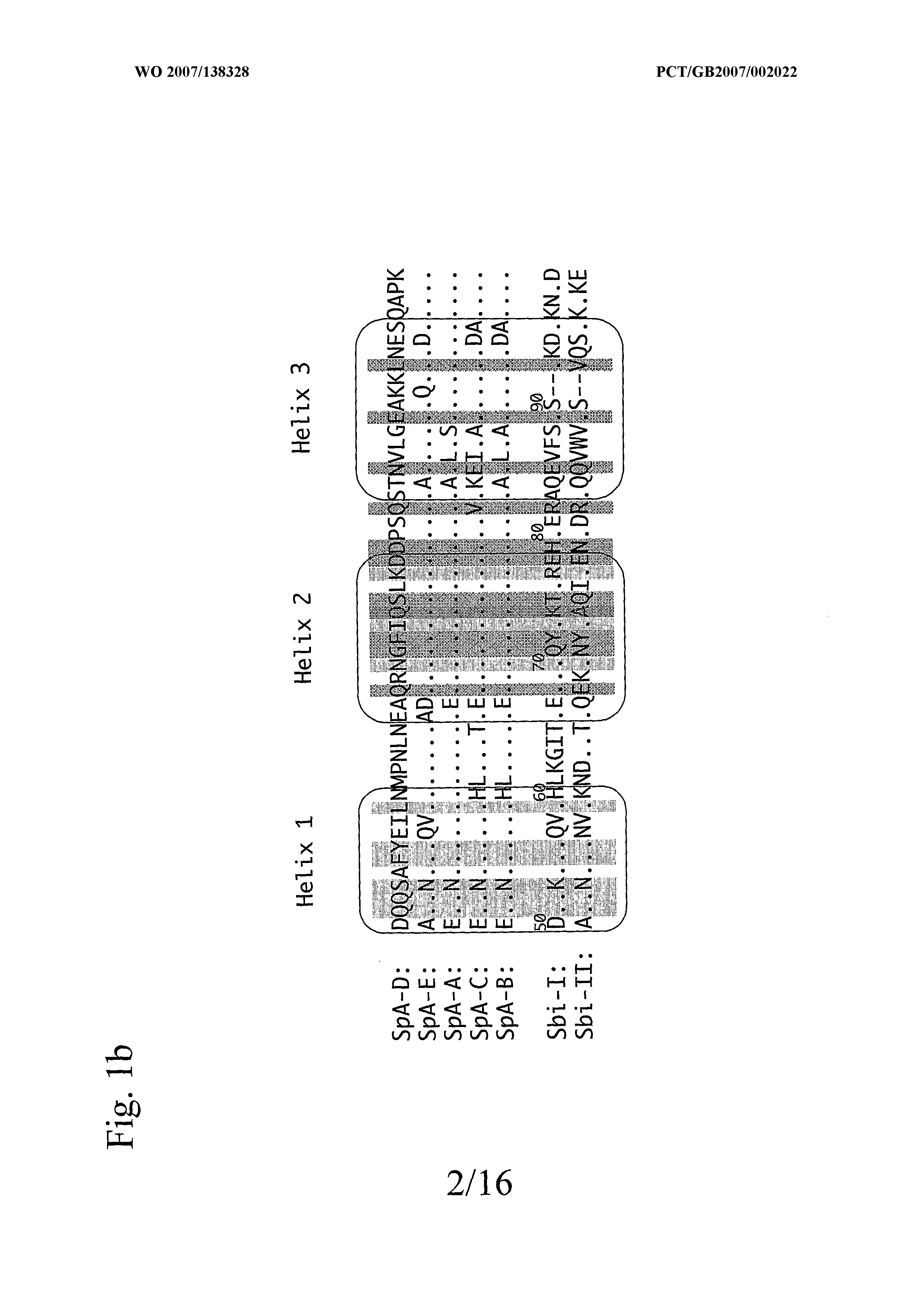 The domain structure of this protein, as elucidated by the present inventors, is illustrated in Figure Ia. In this specification, by "Sbi-I domain" is meant a polypeptide sequence comprising at least amino acids 42 to 94 of the Sbi sequence shown above, or a variant or fragment thereof having at least 80% sequence identity therewith. The domain may have the ability to bind immunoglobulin. By "Sbi-II domain" is meant a polypeptide sequence comprising at least amino acids 92 to 156 of the Sbi sequence shown above, or a variant or fragment thereof having at least 80% sequence identity therewith. The domain may have the ability to bind immunoglobulin. By "Sbi-III domain" is meant a polypeptide sequence comprising at least amino acids 150 to 196 of the Sbi sequence, a variant thereof having at least 80% sequence identity therewith which retains the ability to bind to C3 protein, or a fragment of either which retains the ability to bind C3 protein. The fragment may be at least 30, at least 35, at least 40, or at least 45 amino acids in length. By "Sbi-IV domain" is meant a polypeptide sequence comprising at least amino acids 197 to 266 of the Sbi sequence, or a variant thereof having at least 80% sequence identity therewith which retains the ability to bind to C3 protein, or a fragment of either which retains the ability to bind C3 protein. The fragment may be at least 30, at least 35, at least 40, at least 45, at least 50, at least 55, at least 60, or at least 65 amino acids in length.