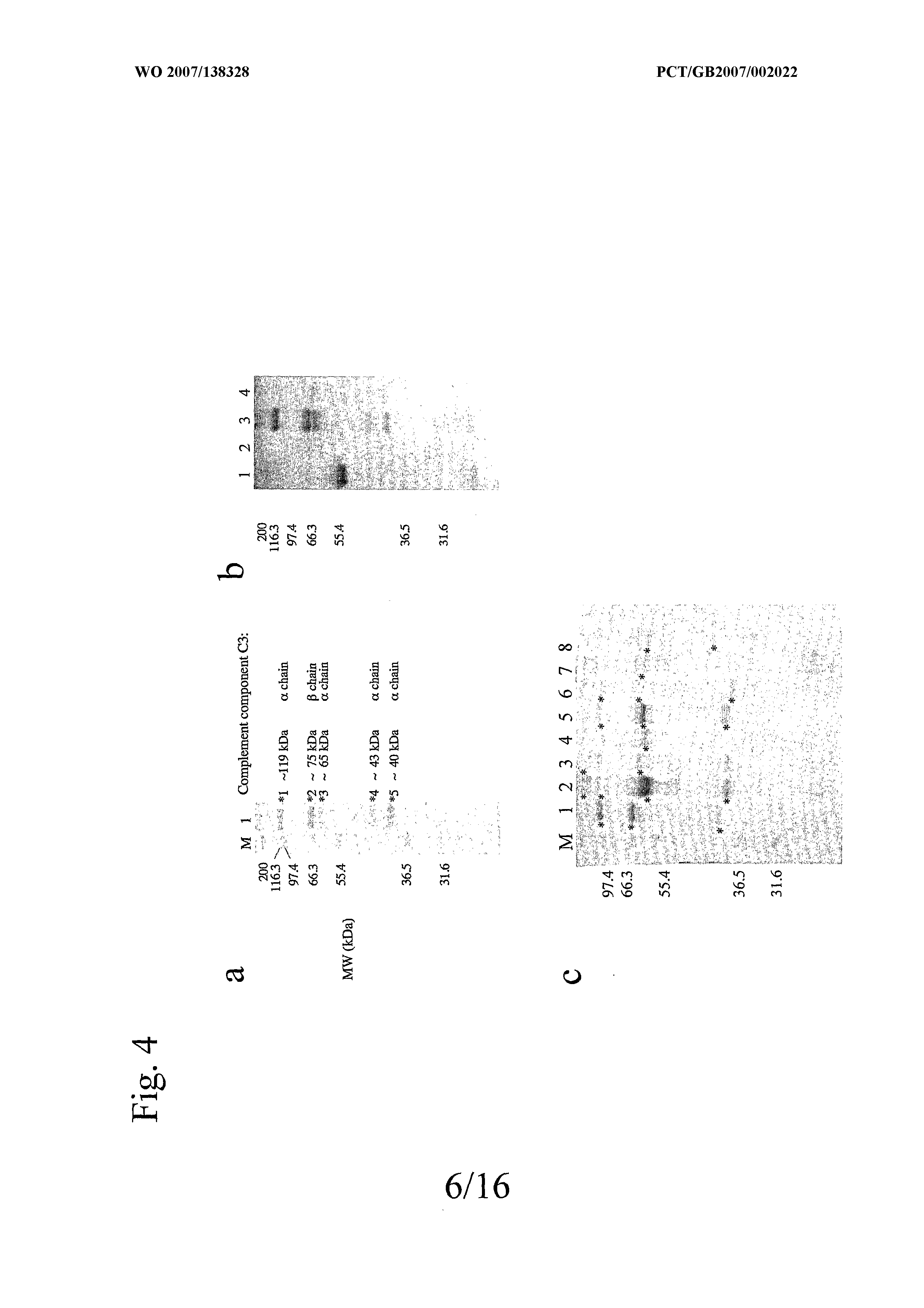 The nucleic acid may encode a fusion protein comprising the complement-binding protein and a heterologous component (and any intervening linker sequence), as described above. The invention further provides a vector (e.g. an expression vector) comprising a nucleic acid of the invention. The invention also provides a host cell comprising a nucleic acid or a vector of the invention. The host cell may be prokaryotic or eukaryotic as desired. The invention also provides a complement-binding protein, nucleic acid, vector or host cell as described above for use in a method of medical treatment. The invention further provides a pharmaceutical composition comprising a complement-binding protein, nucleic acid, vector or host cell as described above and a pharmaceutically acceptable carrier. The invention further provides" a complement-binding protein comprising a Sbi-III domain capable of binding to C3 protein and/or a Sbi-IV domain capable of binding to C3 protein, or a nucleic acid encoding the same, or a vector or host cell containing such a nucleic acid, for use in a method of medical treatment. The complement-binding protein may comprise a Sbi-III domain in the absence of Sbi-IV, or may comprise a Sbi-IV domain in the absence of Sbi-III, or may comprise a Sbi-III domain and a Sbi-IV domain. For example, it may comprise a Sbi-III-IV polypeptide. The invention will now be described in more detail, by way of example and not limitation, by reference to the accompanying drawings .