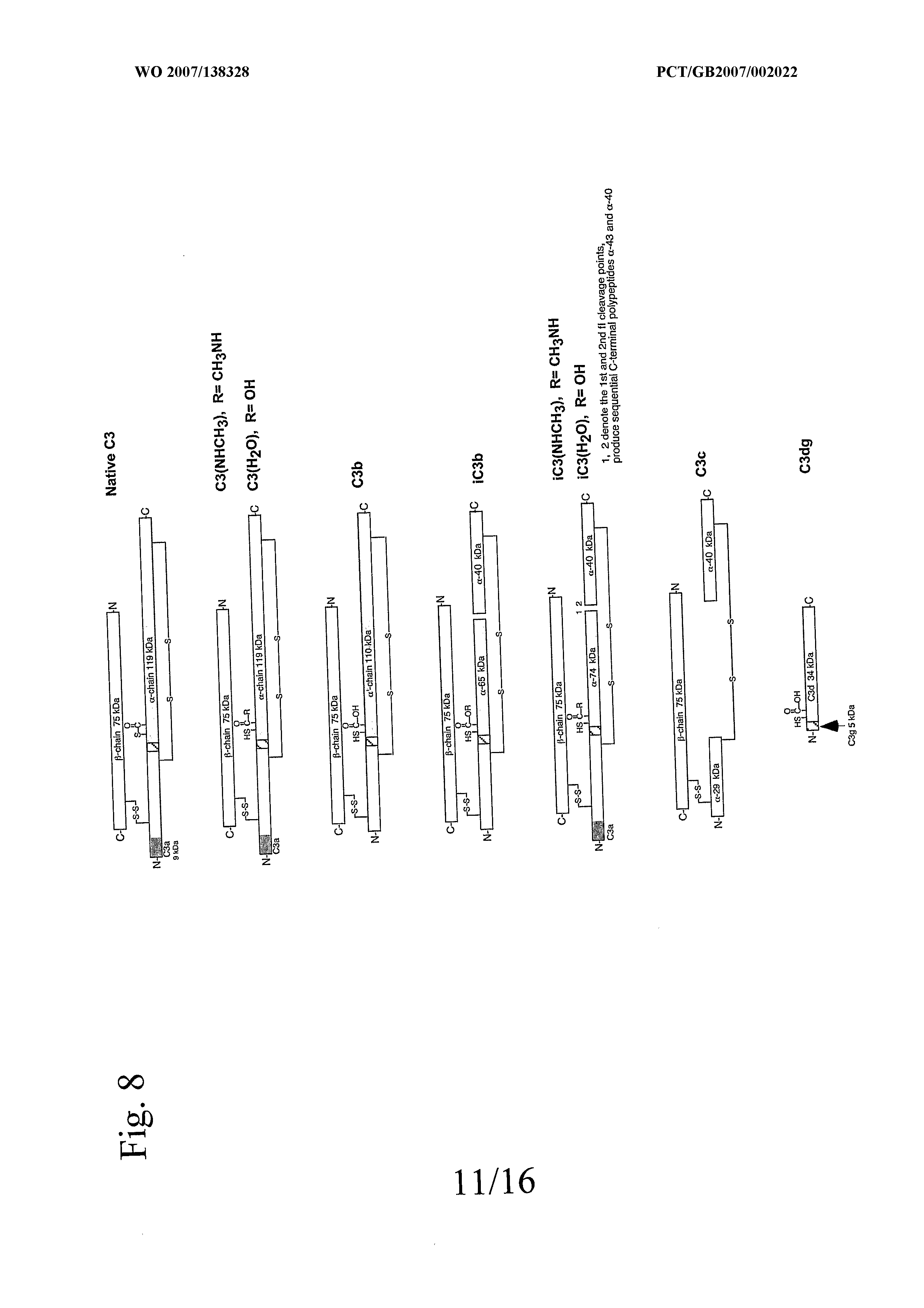 complement function and complement activators. The stimulus and the target may be the same or different. Where the system comprises components of the classical pathway, one or more antibodies may be present. For study of the lectin pathway, a source of mannose or other carbohydrate bound by MBP or ficolin may be present. For study of the alternative pathway, lipopolysaccharides (LPS) may be present. Additionally or alternatively the system may contain "responder" cells capable of responding to one or more products of complement activation, such as anaphylatoxins (C3a and C5a) or opsonised targets (which may or may not be cells) carrying opsonins such as C3b. Such "responder" cells are typically cells of the immune system and include basophils, neutrophils, mast cells, and macrophages . The invention also provides a method of inhibiting C3a anaphylatoxin activity in a biological system, comprising contacting the system with a complement-binding protein comprising a Sbi-IV domain capable of binding to C3 protein. If desired, the complement-binding protein may further comprise a Sbi-III domain capable of binding to C3 protein. For example, it may comprise a Sbi-III-IV polypeptide. However, use of the Sbi- IV domain alone may be preferred. This method may be applied in isolation, or in conjunction with a method of inhibiting complement activation. In such cases, complement activation may be inhibited using a complement binding protein as described herein comprising a Sbi-III domain or a fragment or derivative thereof capable of binding to C3 protein. The methods of the invention may also be applied in vivo in situations where complement is activated inappropriately, to an