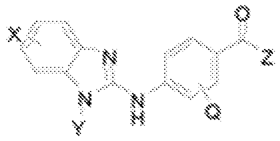 The benzamide compound and its intermediates may exist in different tautomeric forms. Tautomers include any structural isomers of different energies that have a low energy barrier to interconversion. One example is proton tautomers (prototropic tautomers.) In this example, the interconversions occur via the migration of a proton. Examples of prototropic tautomers include, but are not limited to keto-enol and imine-enamine isomerizations. In another example illustrated graphically below, proton migration between the 1 -position, 2-amino and 3 -position nitrogen atoms of a 2-aminobenzimidazole ring may occur. As a result, Formulas la, lb and Ic are tau meric forms of each other: In some aspects, the benzamide compound is in the form of a pharmaceutically acceptable salt. Pharmaceutically acceptable salts include any salt derived from an organic or inorganic acid. Examples of such salts include but are not limited to the following: salts of hydrobromic acid, hydrochloric acid, nitric acid, phosphoric acid and sulphuric acid. Organic acid addition salts include, for example, salts of acetic acid, benzenesulphonic acid, benzoic acid, camphorsulphonic acid, citric acid, 2-(4-chlorophenoxy)-2-methylpropionic acid, 1,2- ethanedisulphonic acid, ethanesulphonic acid, ethylenediaminetetraacetic acid (EDTA), fumaric acid, glucoheptonic acid, gluconic acid, glutamic acid, N-glycolylarsanilic acid, 4- hexylresorcinol, hippuric acid, 2-(4-hydroxybenzoyl)benzoicacid, l-hydroxy-2-naphthoicacid, 3- hydroxy-2-naphthoic acid, 2-hydroxyethanesulphonic acid, lactobionic acid, n-dodecyl sulphuric acid, maleic acid, malic acid, mandelic acid, methanesulphonic acid, methyl sulpuric acid, mucic acid, 2-naphthalenesulphonic acid, pamoic acid, pantothenic acid, phosphanilic acid ((4-