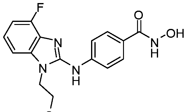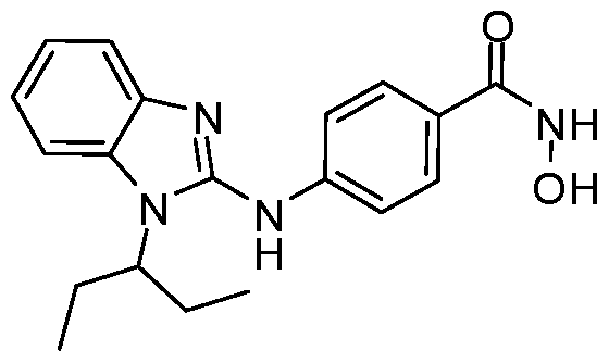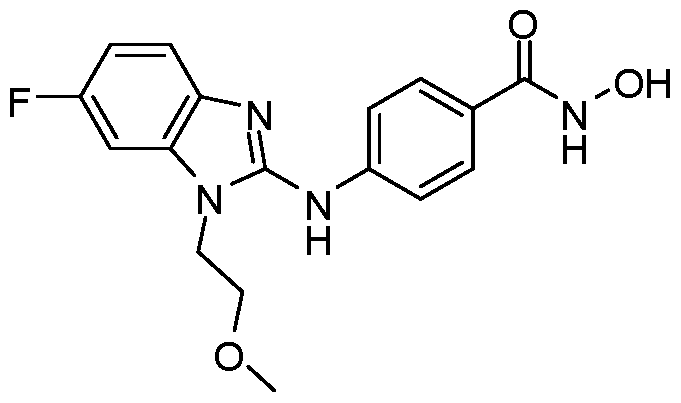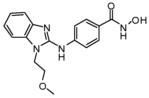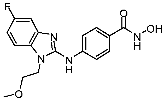 N-hydroxy-4-(l-(pentan-3-yl)-lH-benzo d]imidazol-2-ylamino)benzamide ID#20 4-(6-fluoro-l-(2-methoxyethyl)-lH-benzo d]imidazol-2-ylamino)-N-hydroxybenzamide ID#21 4-(4-fluoro-l-(2-methoxyethyl)-lH-benzo d]imidazol-2-ylamino)-N-hydroxybenzamide ID#22 N-hydroxy-4-(1 sopropyl-5-(methoxymethyl)-lH-benzo[d]imidazol-2-ylamino)benzamide ID#23