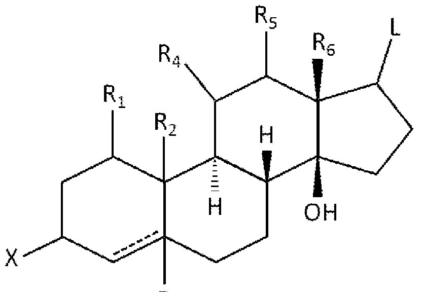 wherein L is a lactone group; Ri, R4 and R5 are independently H or OH; R2 is CH3 or CH2OH; R3 is H or OH when the dotted line is absent or R3 is absent when the dotted line forms a double bond; R4 is H or OH; R5 is H or OH; s is CH3; and X is -OH or a glycoside of 1 to 6 sugar residues, each unsubstituted or substituted. [00064] In some embodiments, the lactone group is a unsaturated, five- or six-membered lactone ring [00065] In some embodiments, the sugar residues are selected from the group consisting of rhamnose, glucose, digitoxose, digitalose, digginose, sarmentose, vallarose, and fructose. [00066] In some embodiments, X is a glycoside of 1, 2, 3, 4, 5 or 6 sugar residues. In some embodiments, X is a glycoside of two digitoxose, one acetyldigitoxose and one glucose; or X is a glycoside of three digitoxoses; or X is a glycoside of rhamnose. [00067] In some embodiments, the sugar residues are unsubstituted or substituted with an acyl group, an amino group, an acetyl group, a halogen group and/or an acylamido group. [00068] A large number of cardiac glycosides are known in the art. Exemplary cardiac glycoside include, but are not limited to, digoxin, lanatoside C, ouabain, digitoxin, digitoxigenin, bufalin, proscillandin A, Oleandnn, neriin, neriantin, Odoroside A and B, Ouabain (G-strophantin), cymarin, sarmentocymarin, periplocymarin, K-strophantin, Ouabain, Thevetin, cerberin, peruvoside, Thevetosin, thevetin A, Cerberin, Tanghinin,