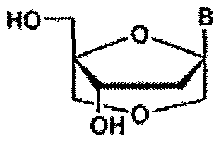 [00101] US 6,770,748 B2 to Takeshi Imanishi also discloses bridged nucleic acids that can be incorporated into an oligonucleotide or polynucleotide, having the general formula: [00102] US 6,770,748 B2 to Takeshi Imanishi defines B as being a pyr nidine or purine nucleic acid base, or an analogue thereof. [00103] Other bridged nucleic acids are taught in U.S. Patent Nos. 8,153,365, 8,080,644, 7,060,809, 7,084,125, 7,060,809, 7,053,207, 6,670,461, 6,436,640, 6,316,198 to Exiqon A/S. [00104] Still other bridged nucleic acids that can be incorporated into an oligonucleotide or polynucleotide are taught in US 7,427,672 B2 to Takeshi Imanishi, having the general formula: