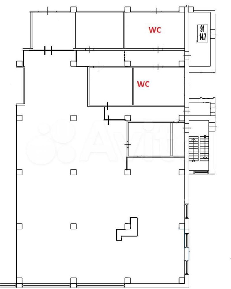 Cмешаннaя плaнировкa: зaл, 3 кабинета бeз окнa, cанузлы. Грузовыe лифты: 5 т.