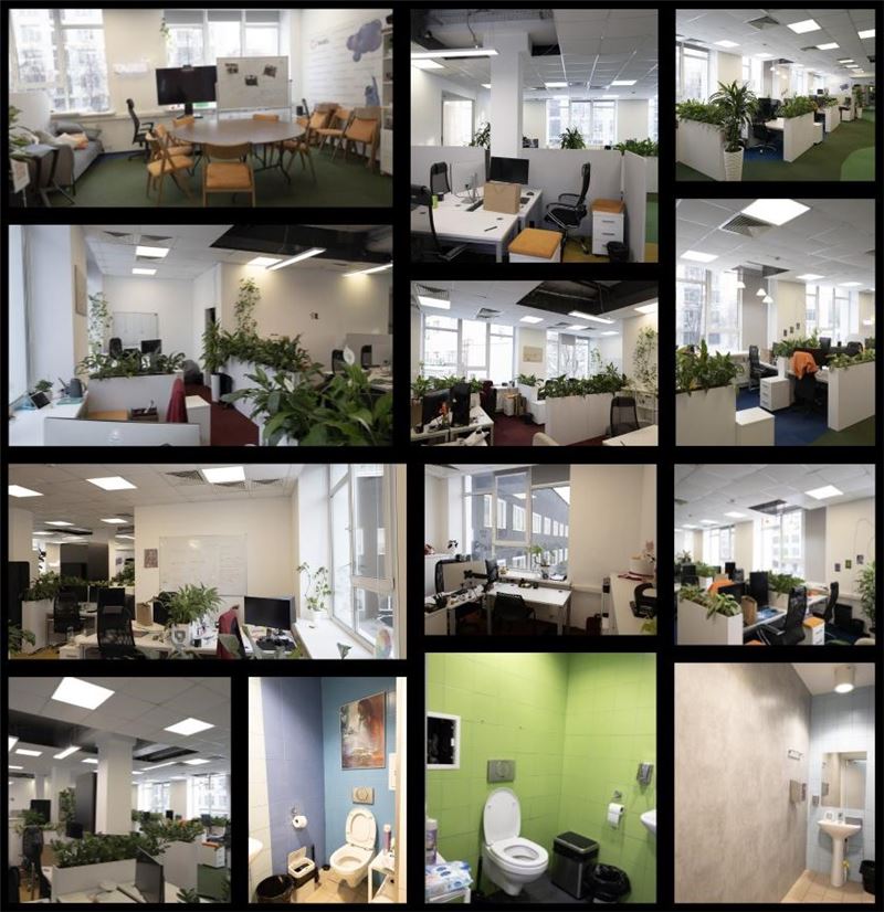 Планировка - open space, переговорная, кабинет руководителя, склад. В блоке: гардеробная, 2 сан.узла, кухня.