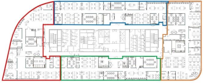 Предлагается в аренду офисное помещение общей площадью 708 кв.м., расположенное в деловом квартале "Сколково Парк", корпусе 4. На схеме отмечено красным цветом.