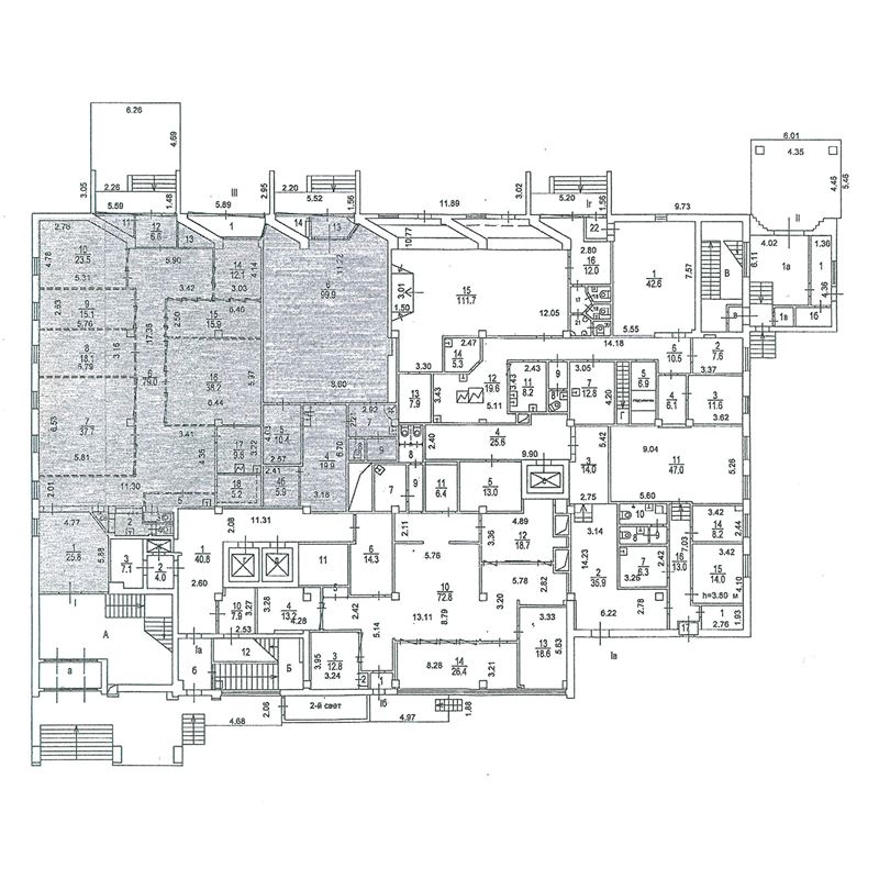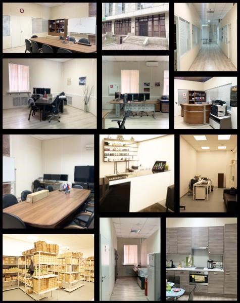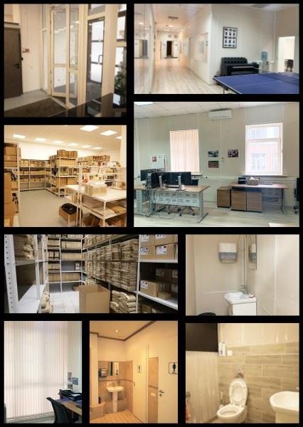 Перегородки со стеклянными вставками. Много окон (выходят на улицу). Высокие потолки. 4 с/у + кухня (кухня с мокрой точкой в блоке 301,8 м2). Стены - под покраску, двери - металлические.